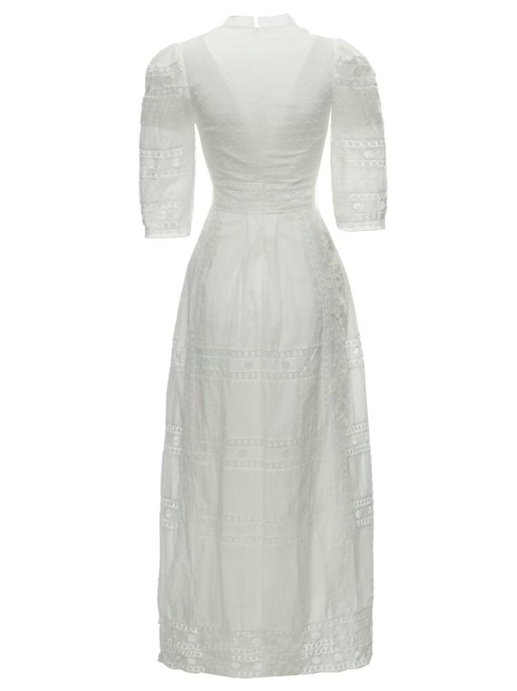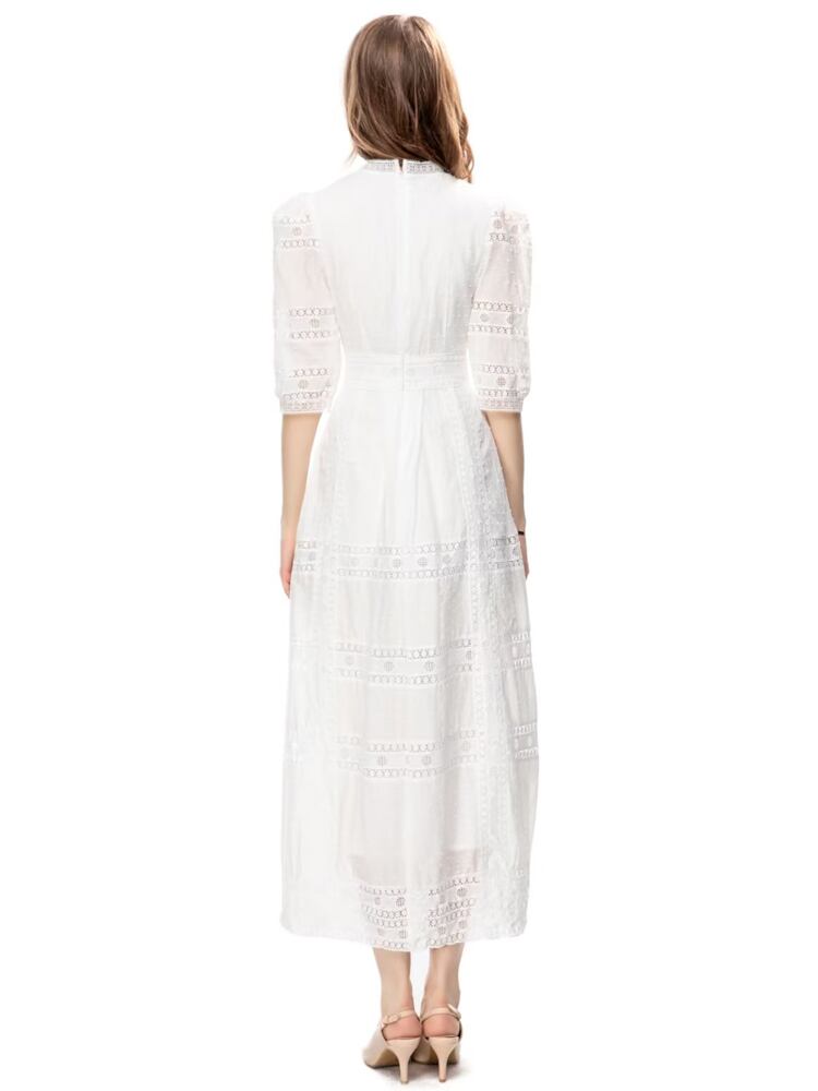 夏ゴージャス有名人中空アウト レース ホワイト ロング ドレス パーティー サマー 夏物