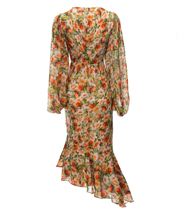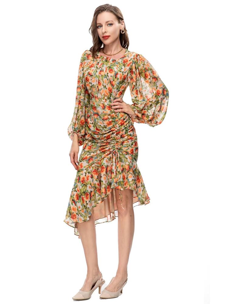 春夏レディースセレブ長袖プリントスリムミディドレスパーティー ロング スプリング 春物 サマー 夏物