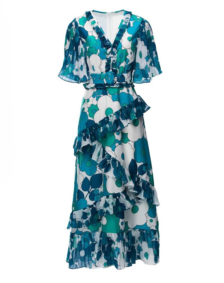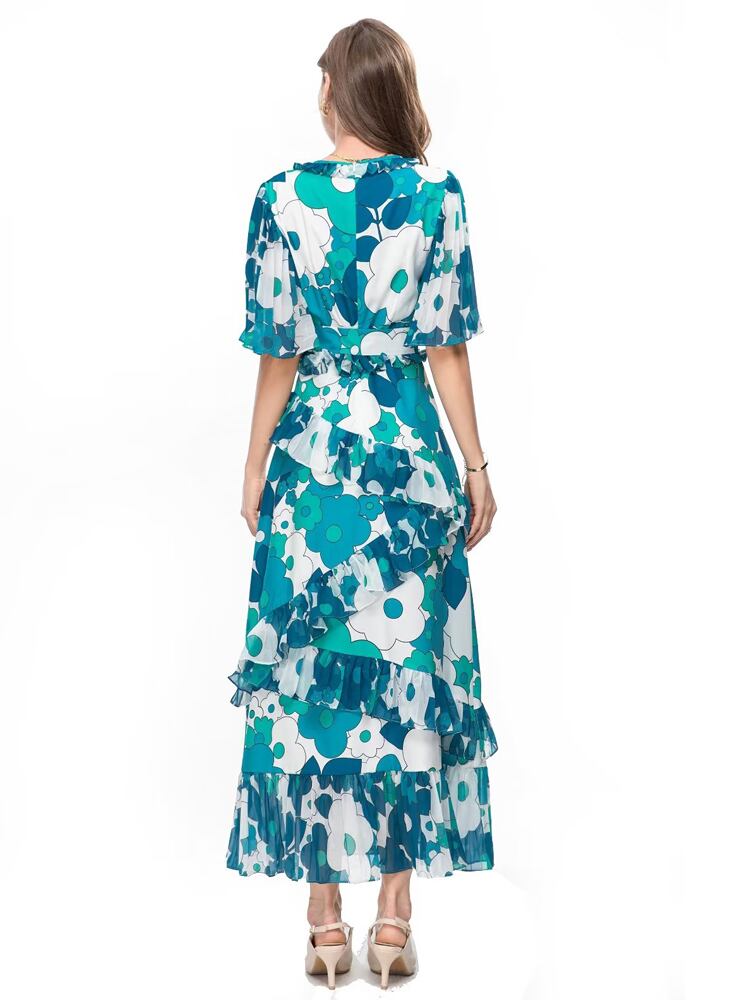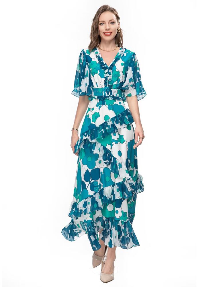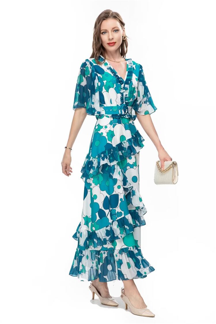 夏有名人半袖プリント ロング ドレス セクシーパーティー ホリデー ショート ハーフスリーブ サマー 夏物