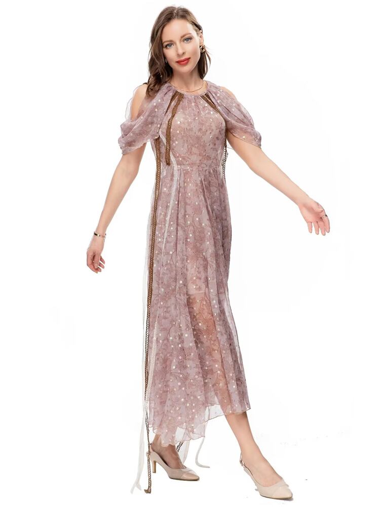 夏シックゴージャス有名人オフショルダーセクシーレースロングドレスパーティー サマー 夏物