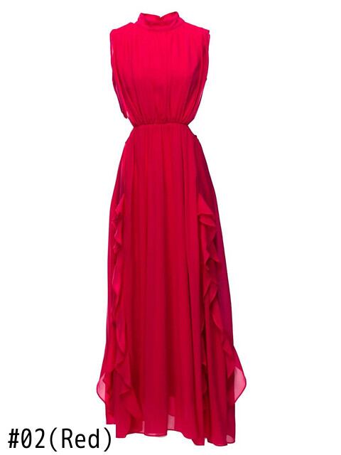 夏有名人フリル スリム ロング ドレス セクシーパーティー バケーション ドレス ラッフル サマー 夏物