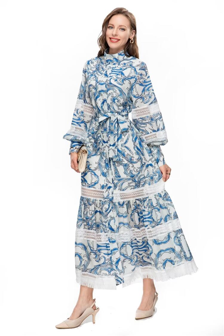 春秋ゴージャス有名人プリント ロング ドレス パーティー休暇 スプリング 春物 オータム 秋物