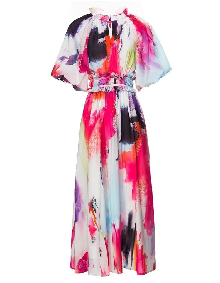 夏豪華有名人半袖ロング ドレス パーティー休暇 ショート ハーフスリーブ サマー 夏物