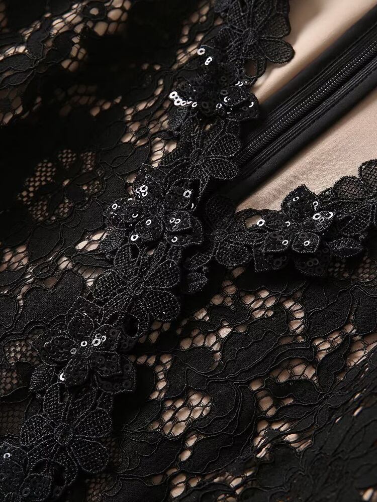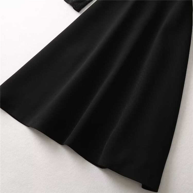 春秋セレブレース長袖黒ミディドレスパーティー ロング ブラック スプリング 春物 オータム 秋物