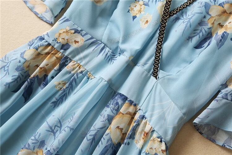 夏有名人シフォン半袖プリント ミディ ドレス パーティー休暇 ショート ハーフスリーブ サマー 夏物