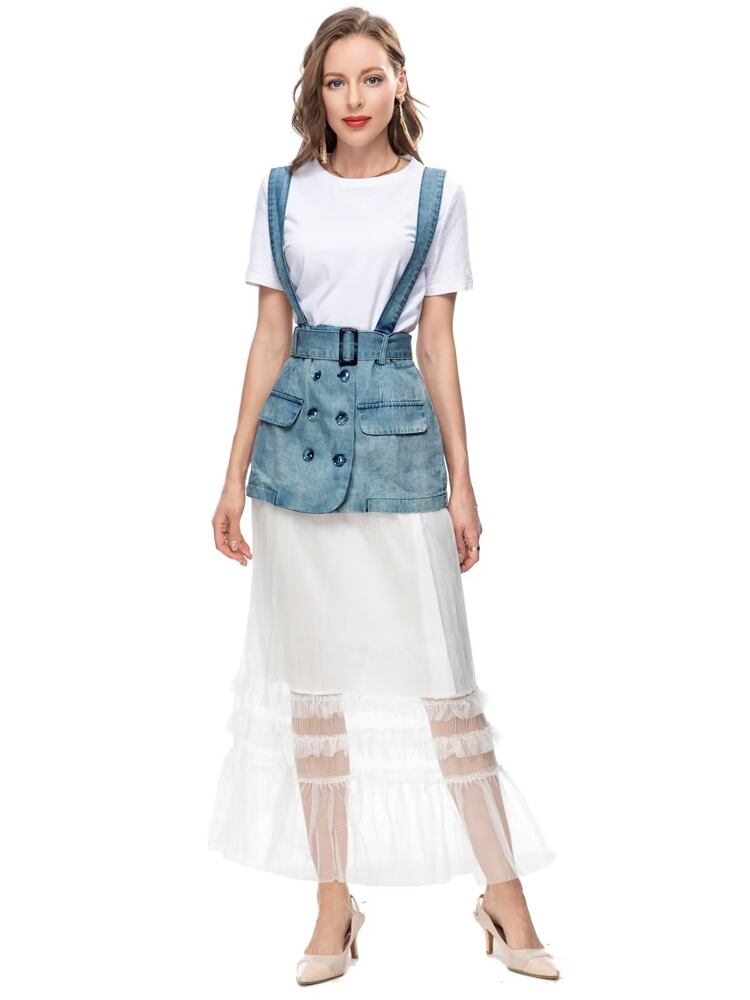 夏レディースセット白Tシャツトップススカート職場スーツ ホワイト レース サマー 夏物