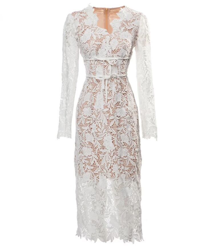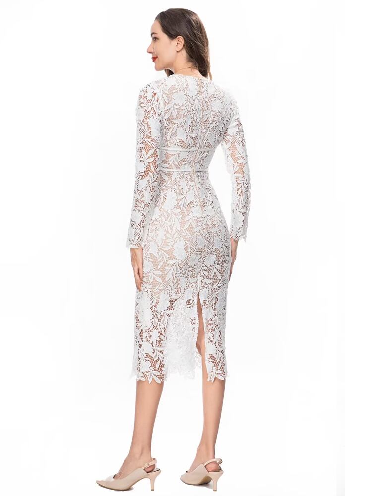 春夏ゴージャス有名人白いレースペンシル ドレス セクシーパーティー ホワイト スプリング 春物 サマー 夏物