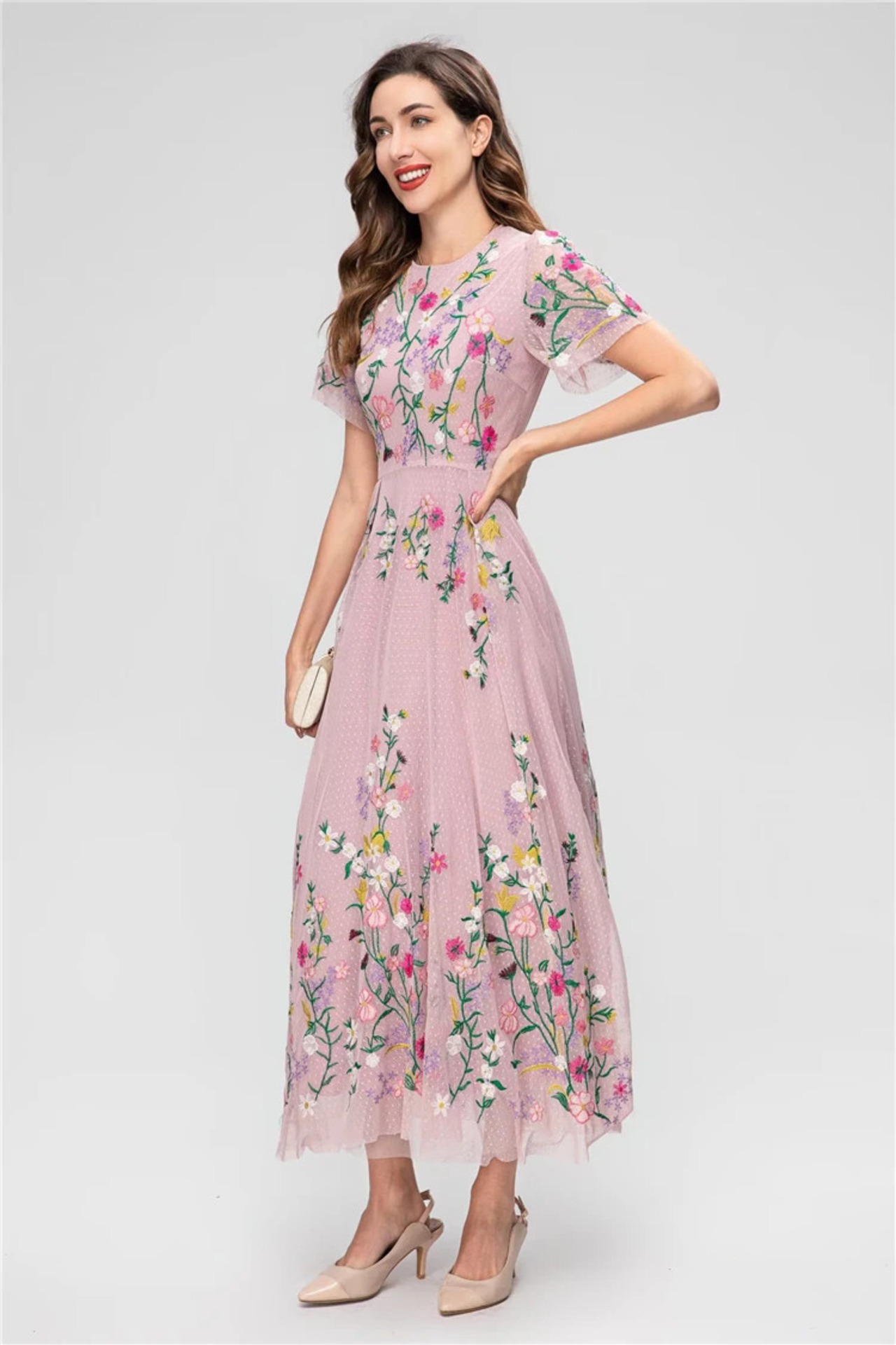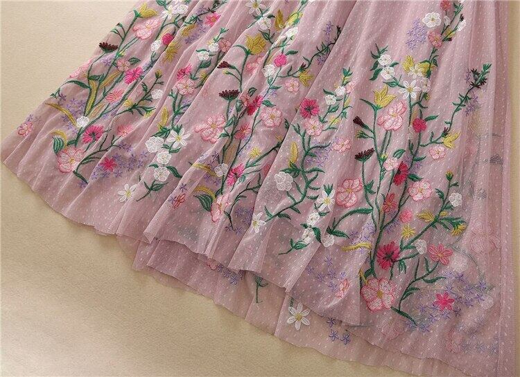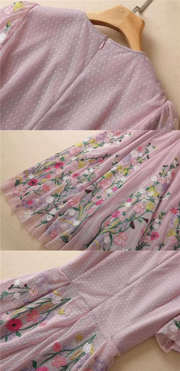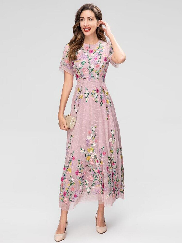 3 夏レディース長袖スリム刺繍プリント メッシュ ロング ドレス パーティー サマー 夏物