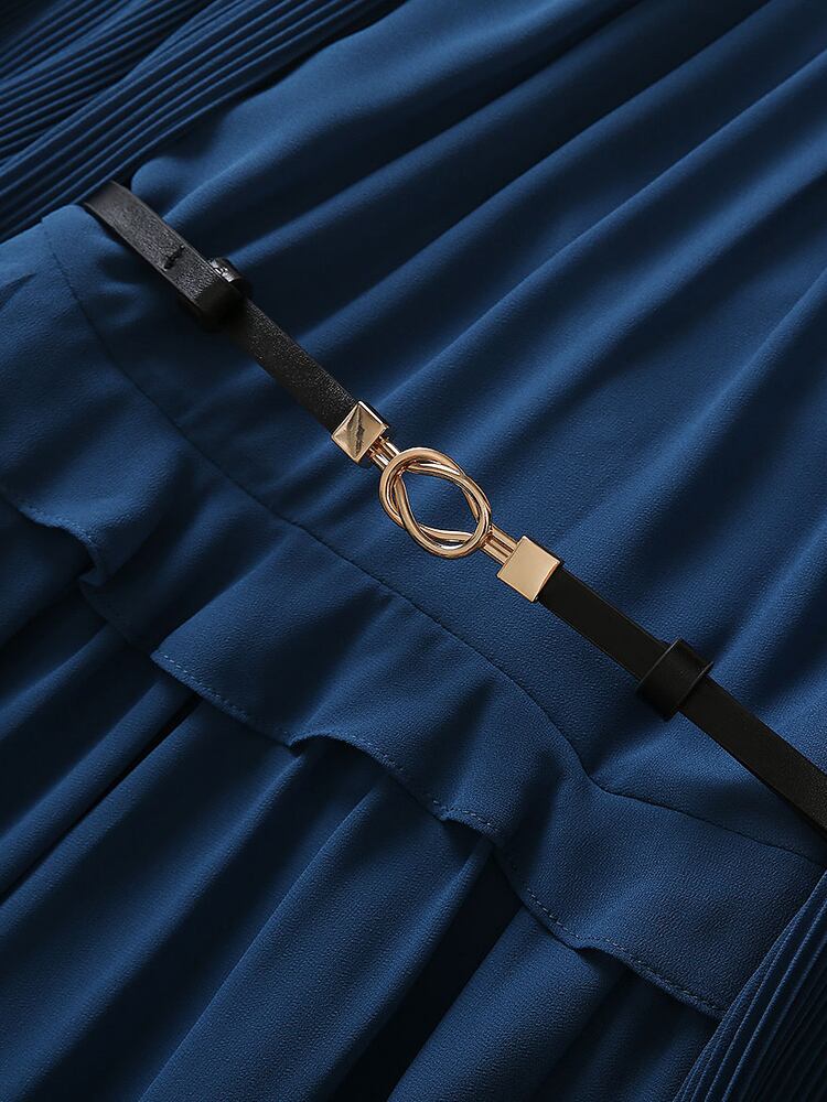 春夏レディースベルトスリムロングスリーブプリーツミディドレスパーティードレス 長袖 スプリング 春物 サマー 夏物 ハーネス
