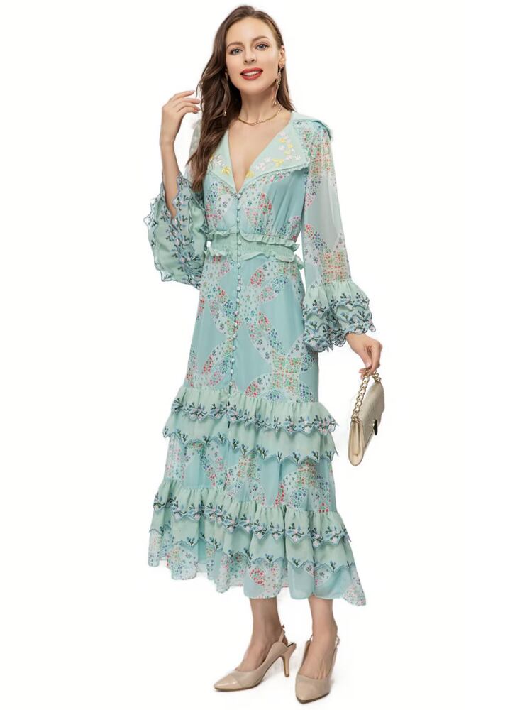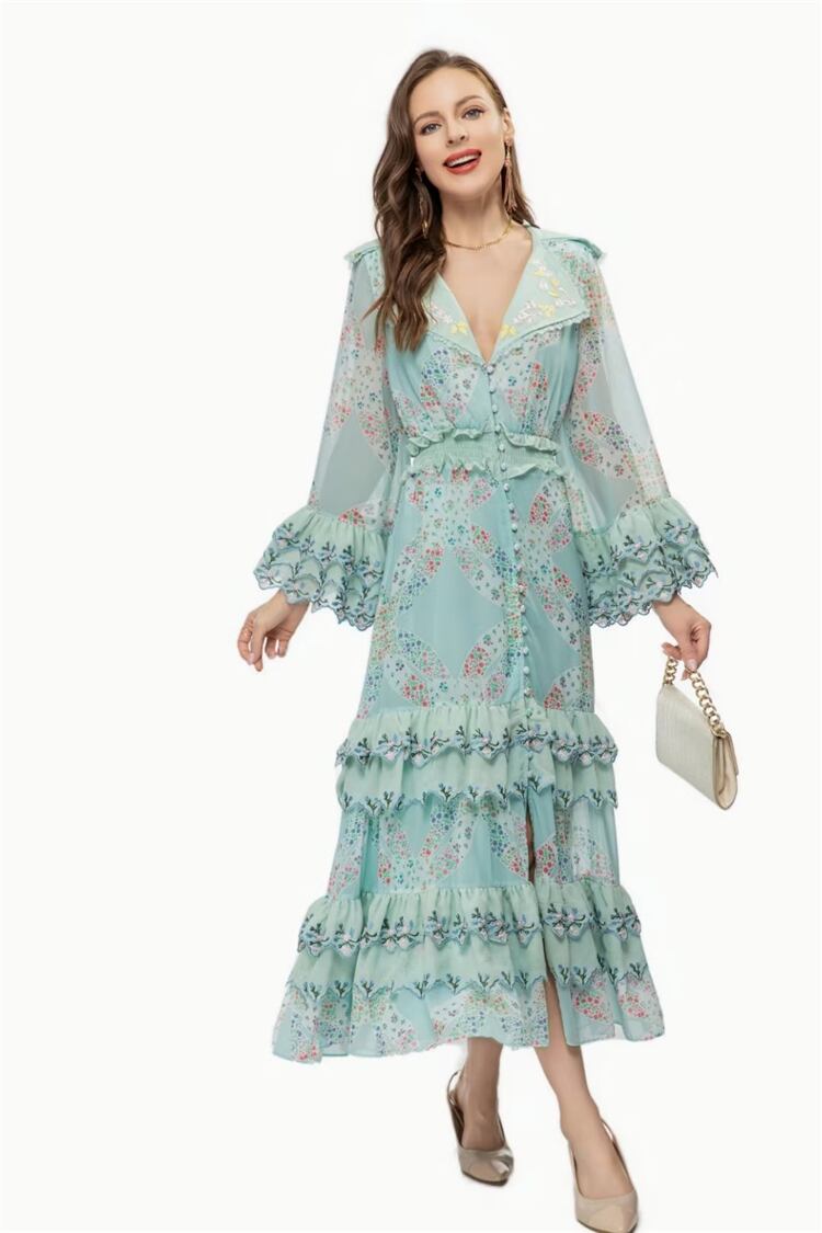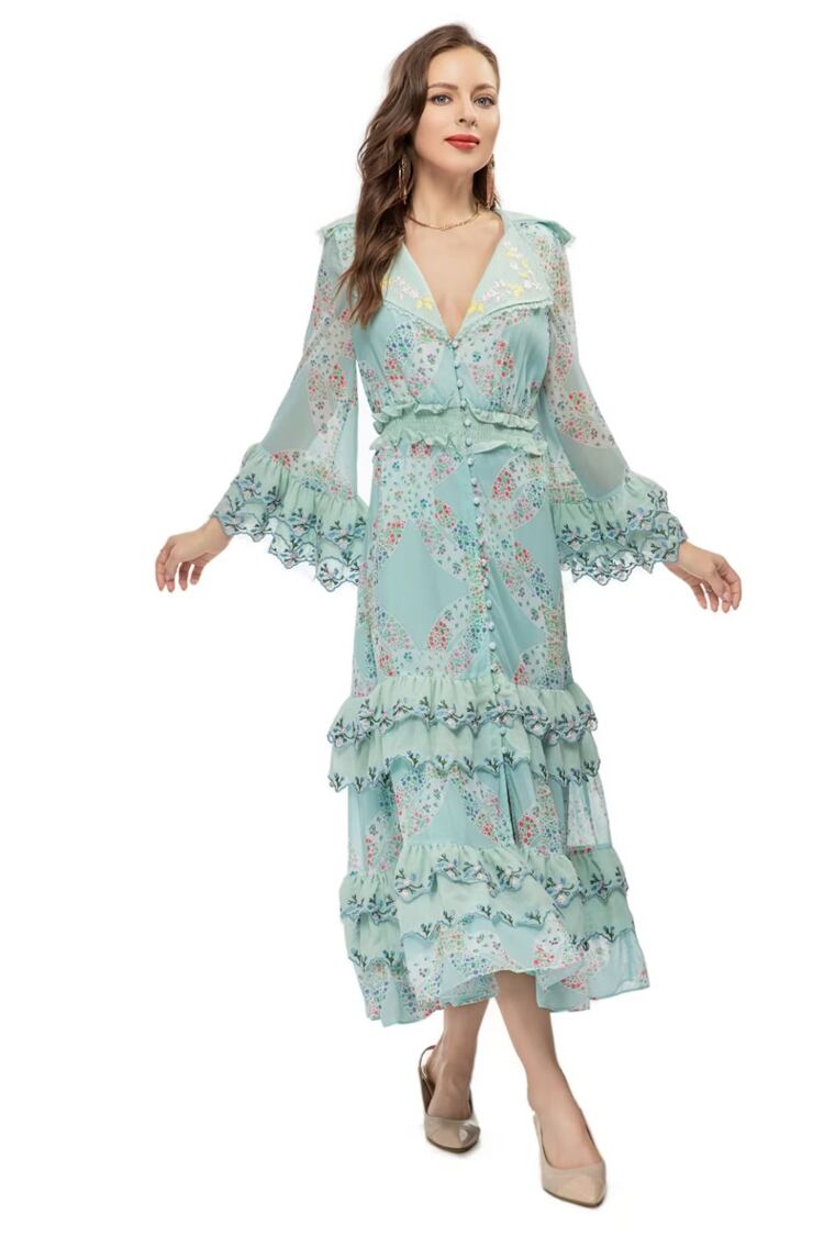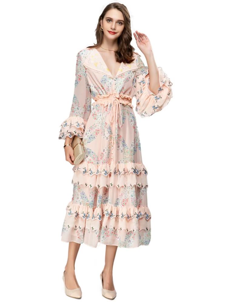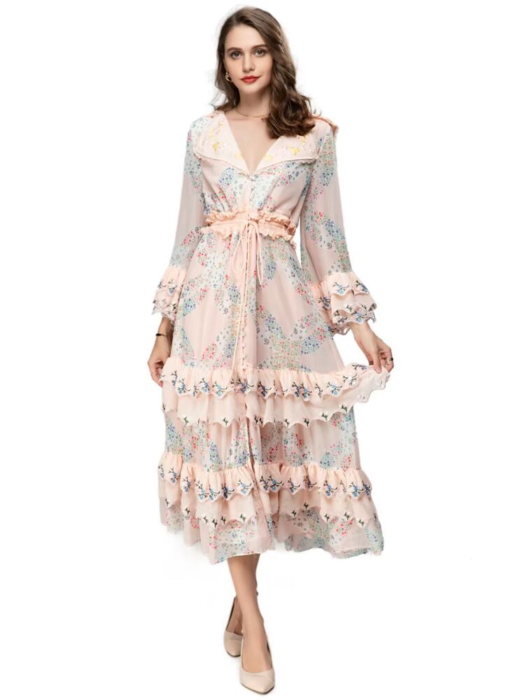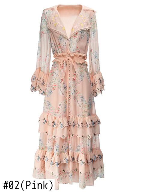 春秋レディース長袖刺繍ロングドレスパーティー スプリング 春物 オータム 秋物