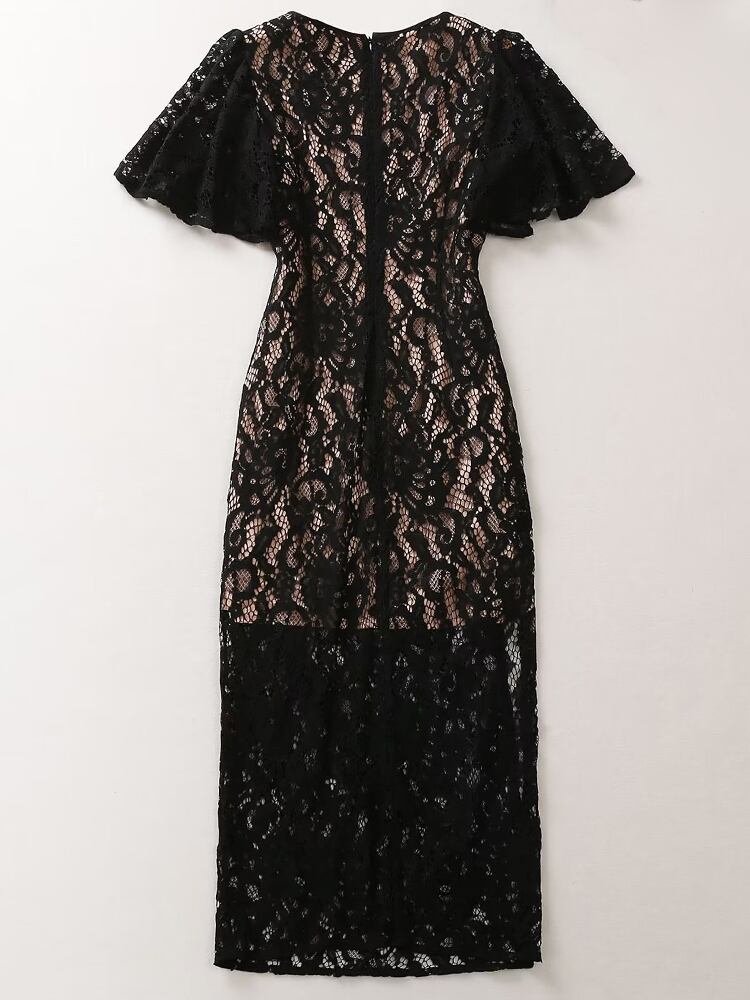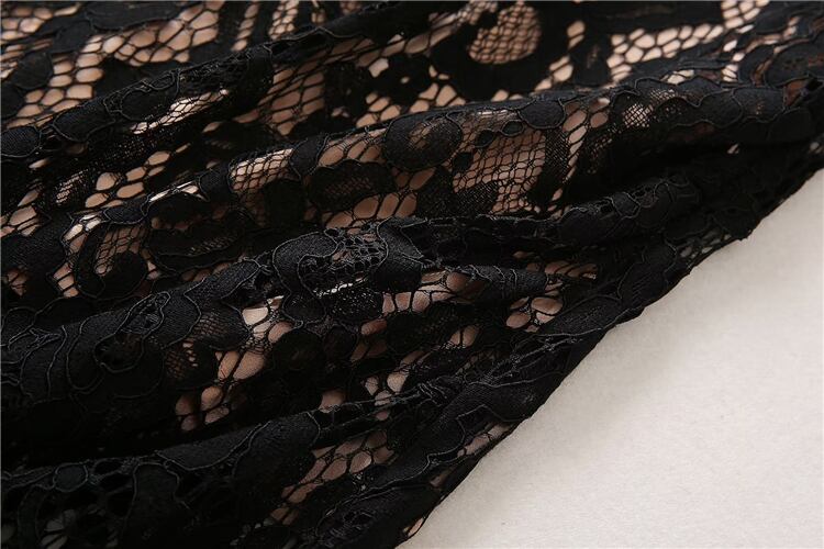 夏レディース半袖レースブラックスリムミディドレスパーティードレス ショート ハーフスリーブ サマー 夏物