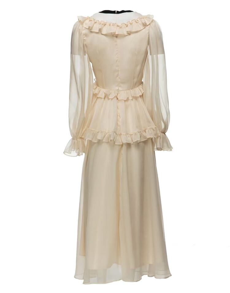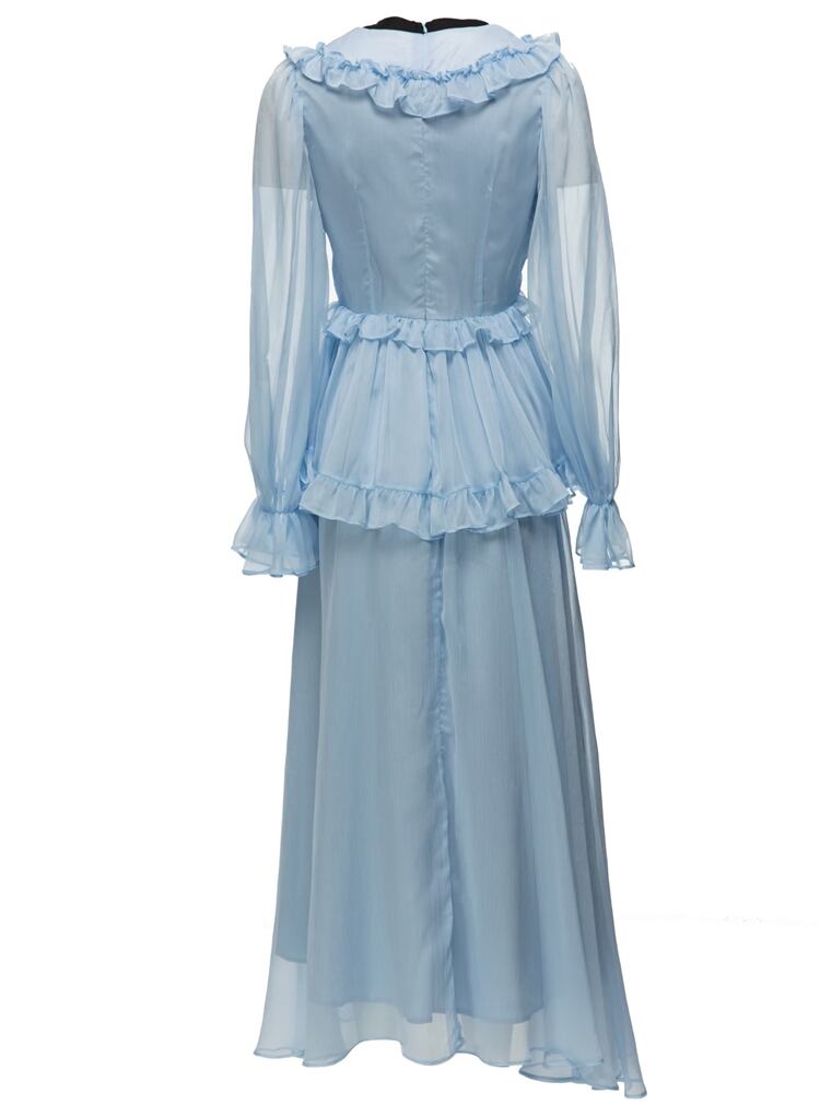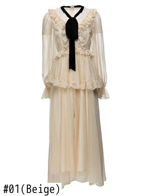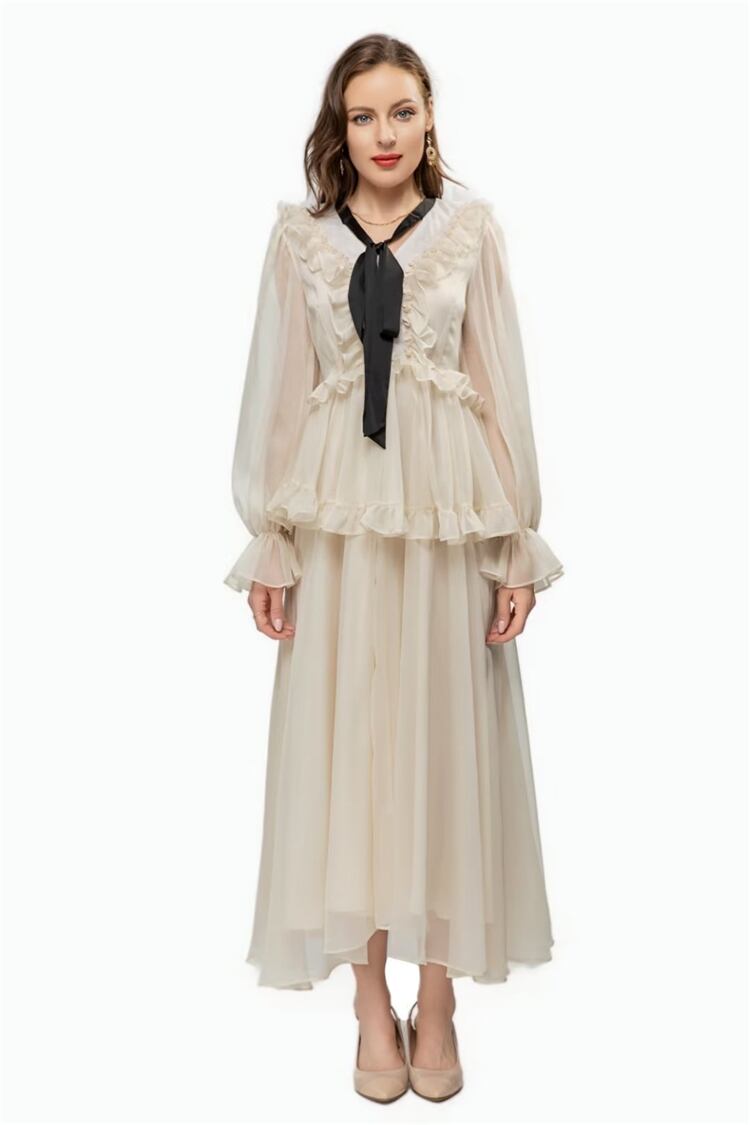 春夏レディースセレブ長袖フリルロングドレスパーティーバケーション スプリング 春物 サマー 夏物