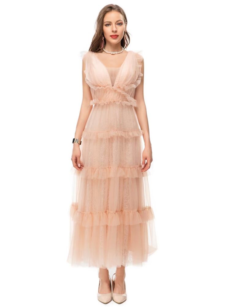 夏 レディース ゴージャス セレブ Vネック セクシー メッシュ ロングドレス パーティー サマー 夏物
