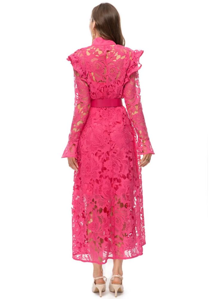 春秋レディース刺繍中空長袖ロングドレスパーティー スプリング 春物 オータム 秋物