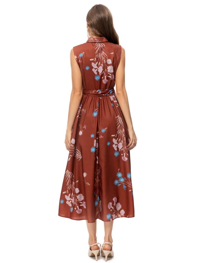 夏レディースノースリーブVネックプリントロングドレスパーティーシック サマー 夏物