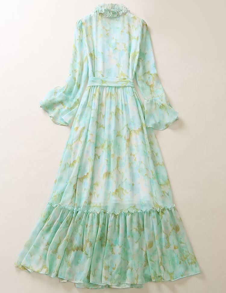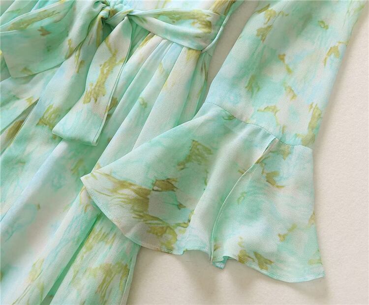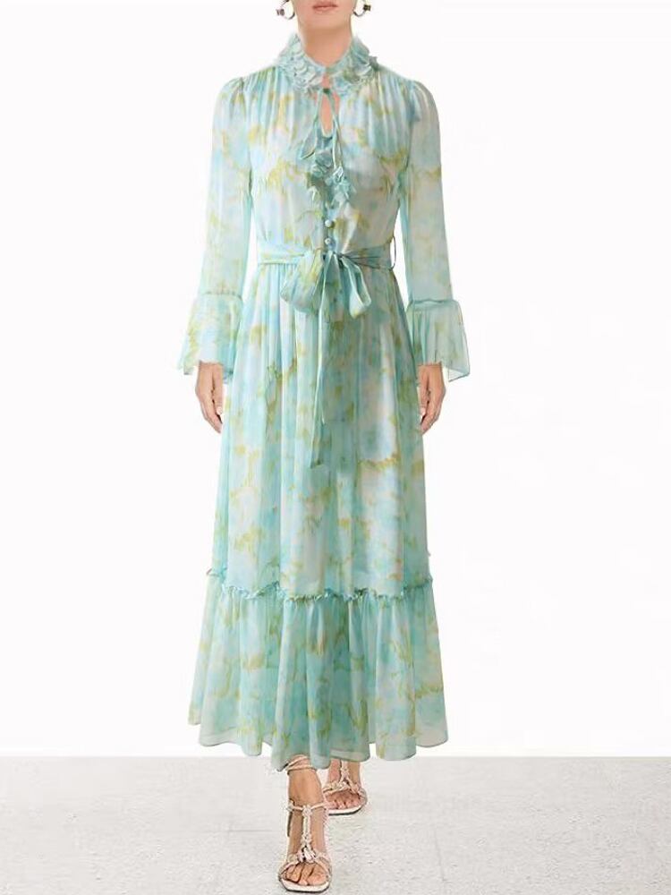 夏セレブ長袖プリントシフォンミディドレスパーティー休暇 ロング サマー 夏物