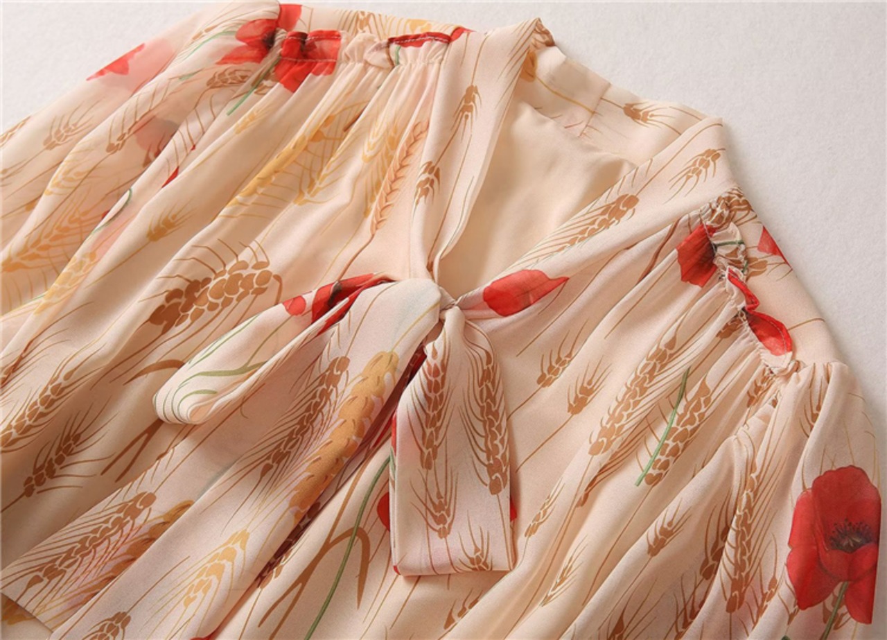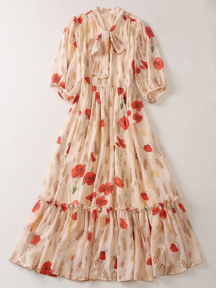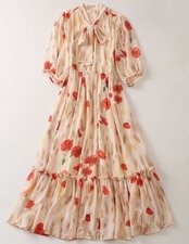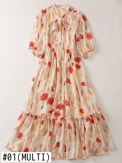 夏レディース半袖プリントシフォンミディドレスパーティードレス ショート ハーフスリーブ サマー 夏物