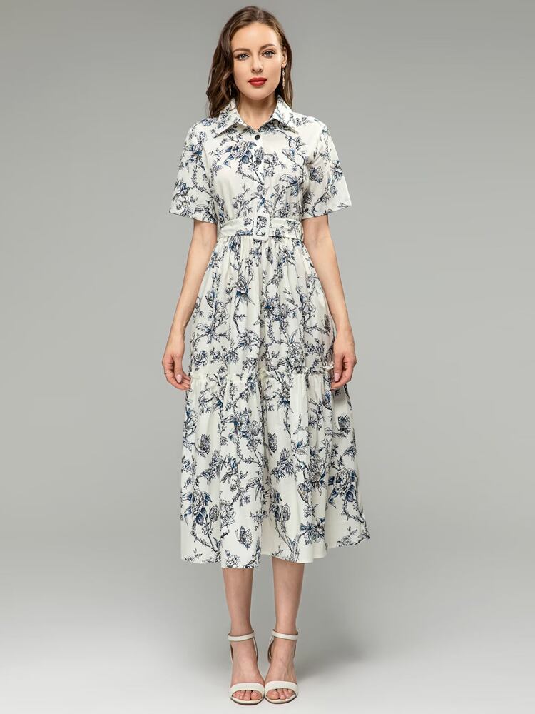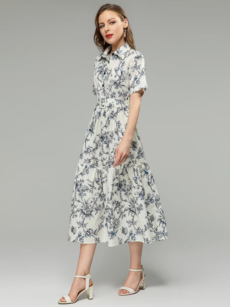 夏レディースゴージャスセレブ半袖プリントシャツドレスパーティー ショート ハーフスリーブ サマー 夏物