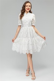 夏レディース半袖刺繍ミディドレスパーティードレス ショート ハーフスリーブ サマー 夏物