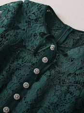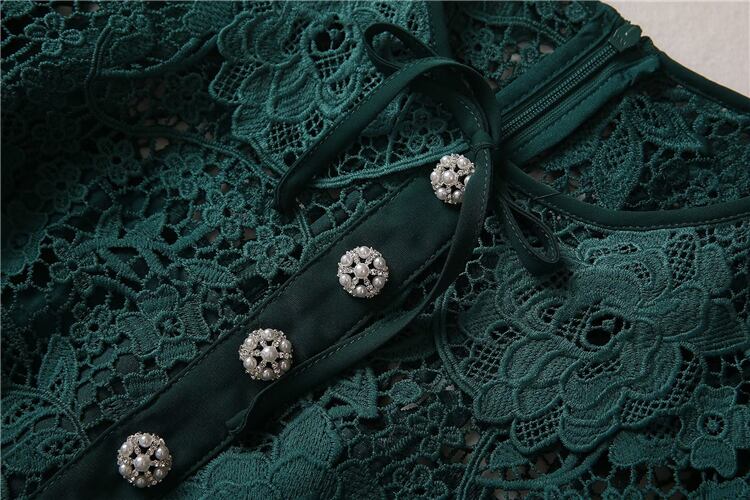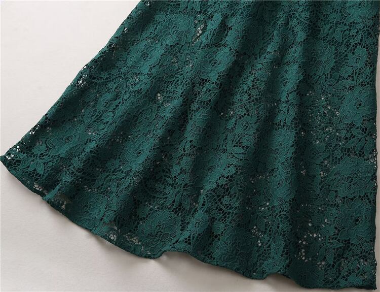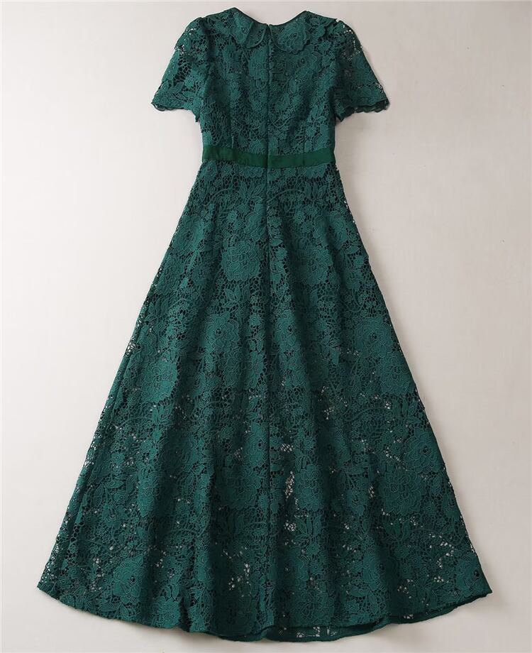 夏半袖中空アウトグリーンミディドレスパーティードレス ショート ハーフスリーブ サマー 夏物