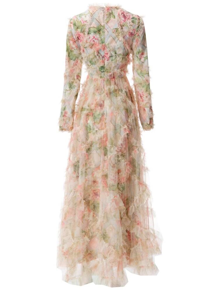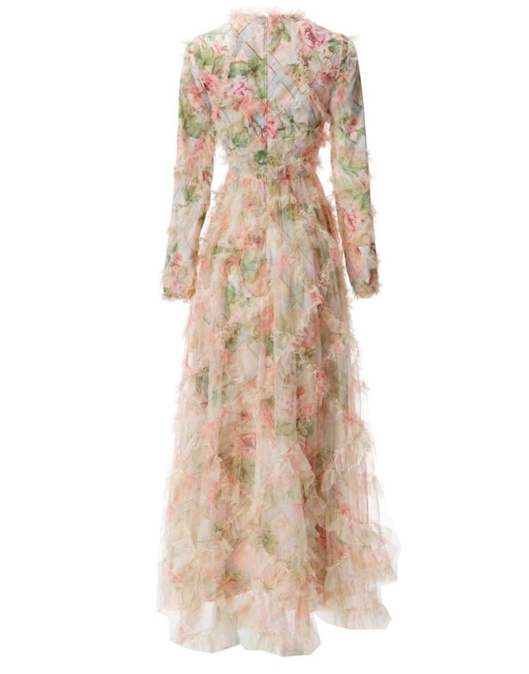 春秋レディース長袖プリントメッシュロングドレスパーティーシック スプリング 春物 オータム 秋物