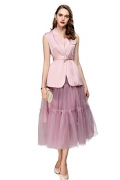 春セットボタンシャツトップメッシュハーフスカートスーツ スプリング 春物
