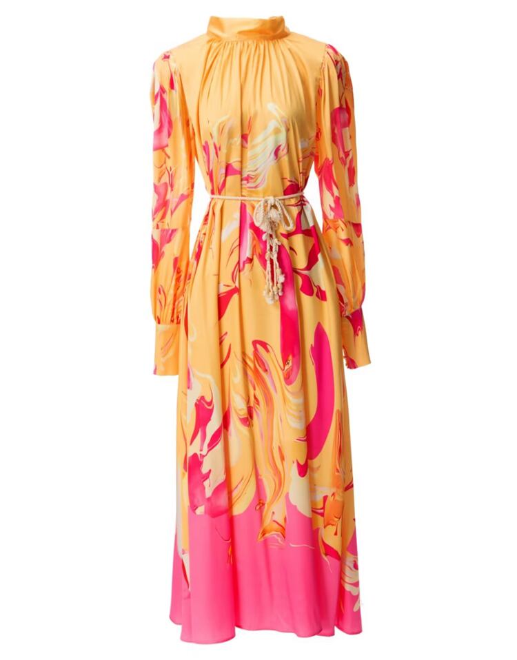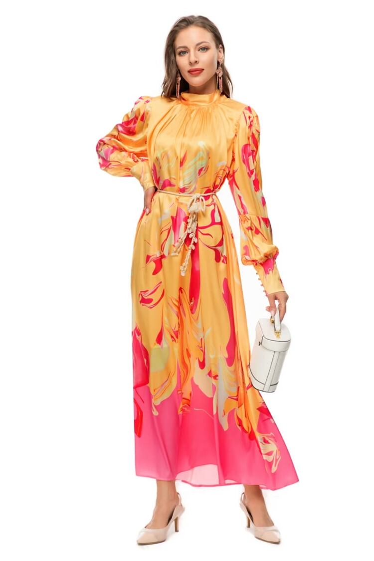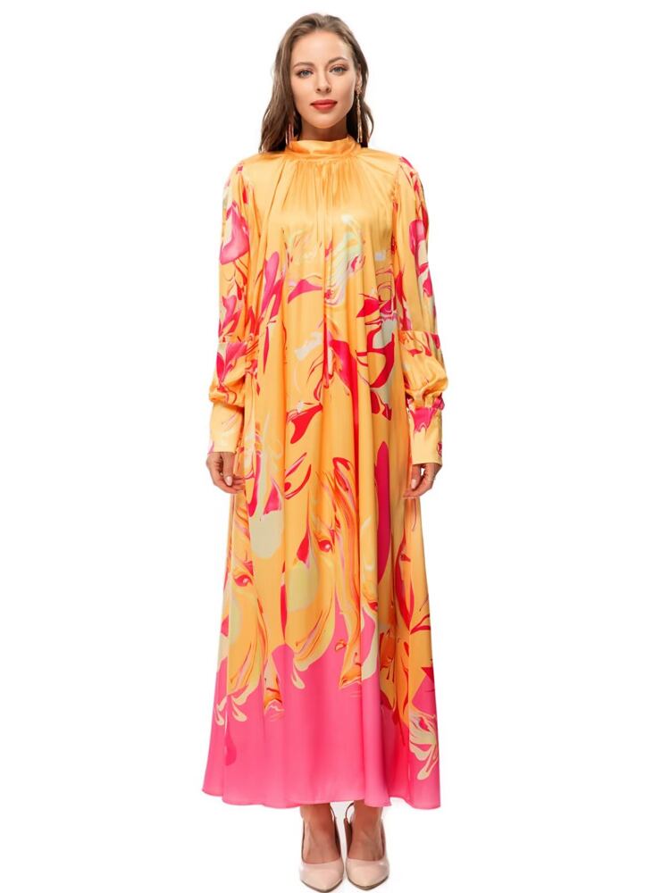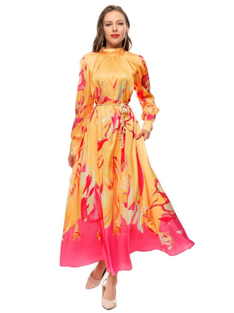 春秋レディース長袖プリントロングドレスパーティーシック スプリング 春物 オータム 秋物