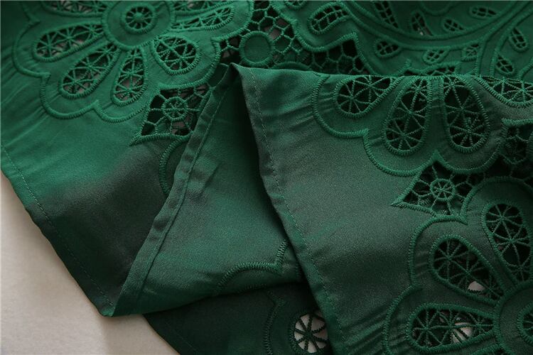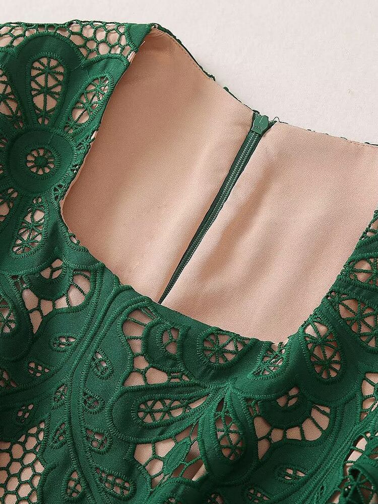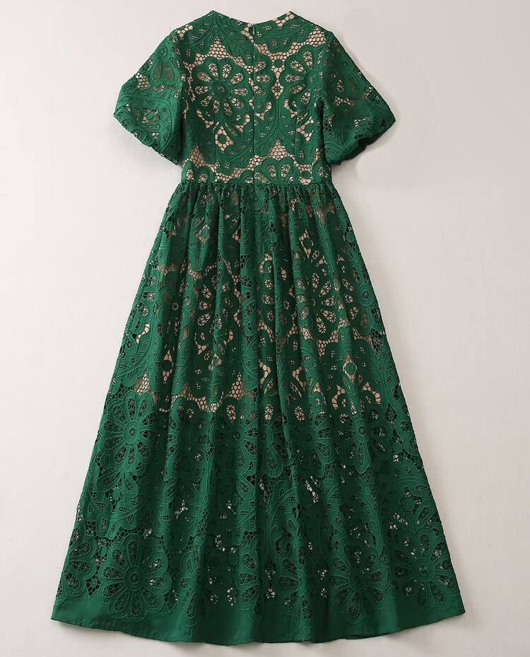 夏半袖中空アウトグリーンミディドレスパーティードレス ショート ハーフスリーブ サマー 夏物