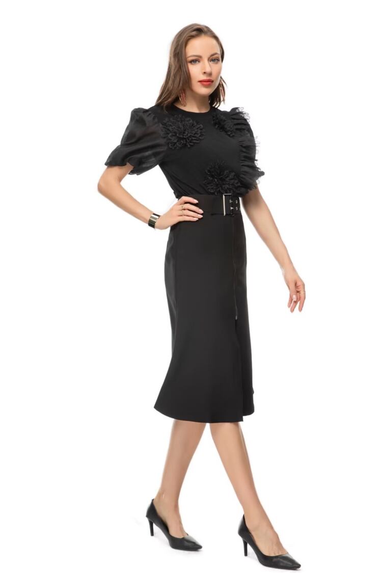 秋レディースセットシャツトップスブラックハーフスカート職場スーツ レース オータム 秋物