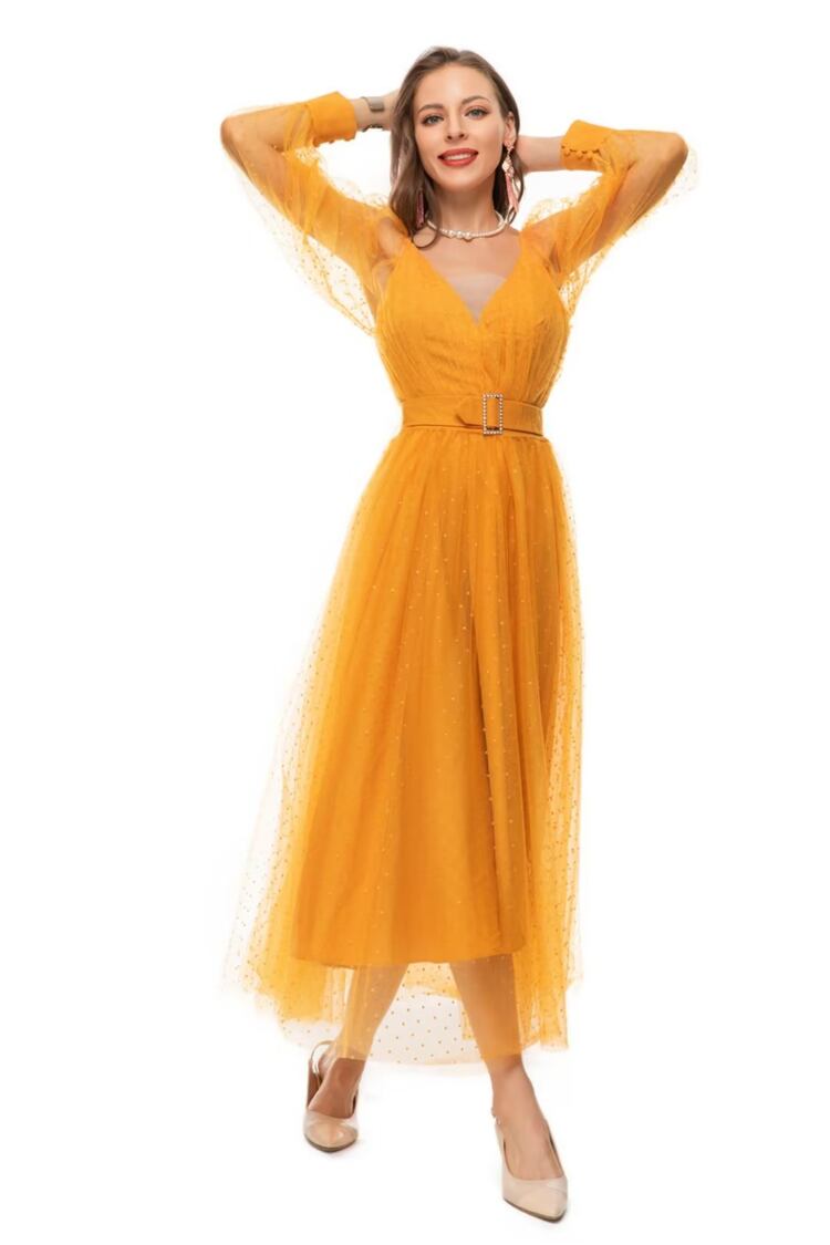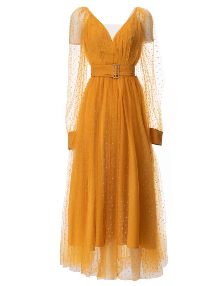 春秋レディースVネックメッシュセクシーロングドレスパーティードレス スプリング 春物 オータム 秋物