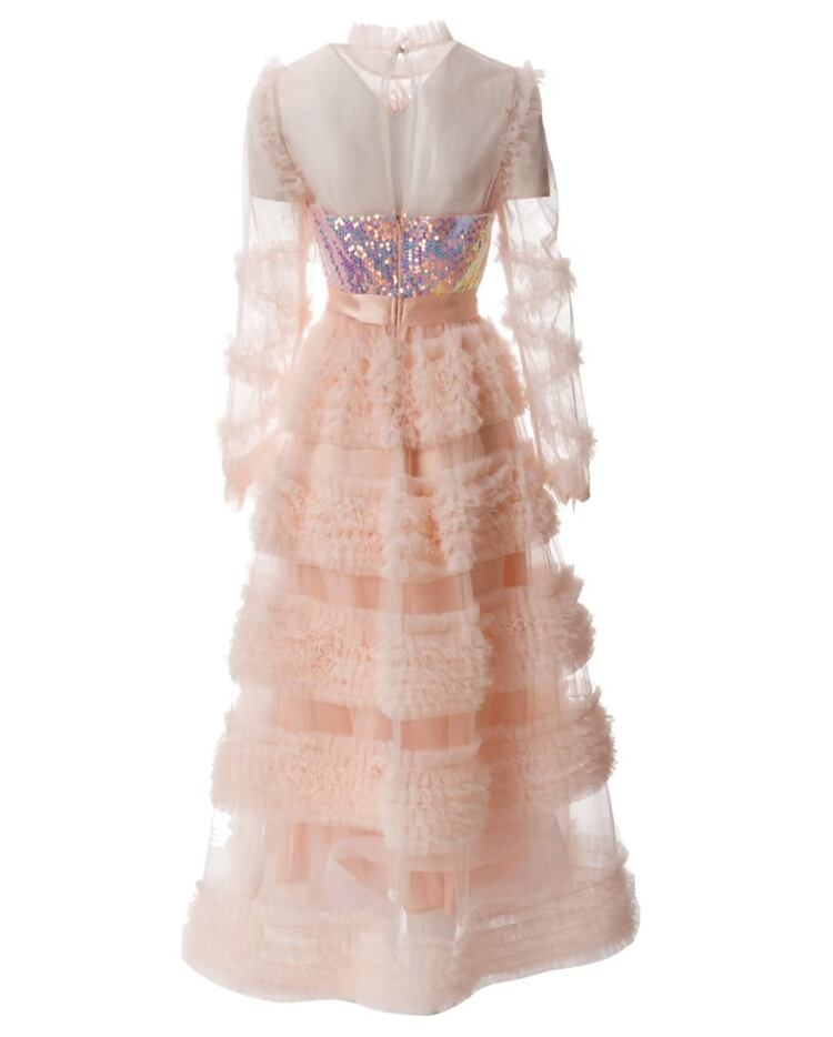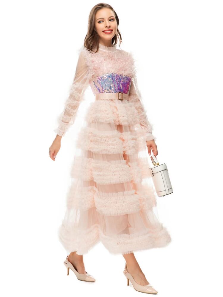 春夏レディースゴージャスセレブフェザースパンコールメッシュロングドレスパーティー スプリング 春物 サマー 夏物