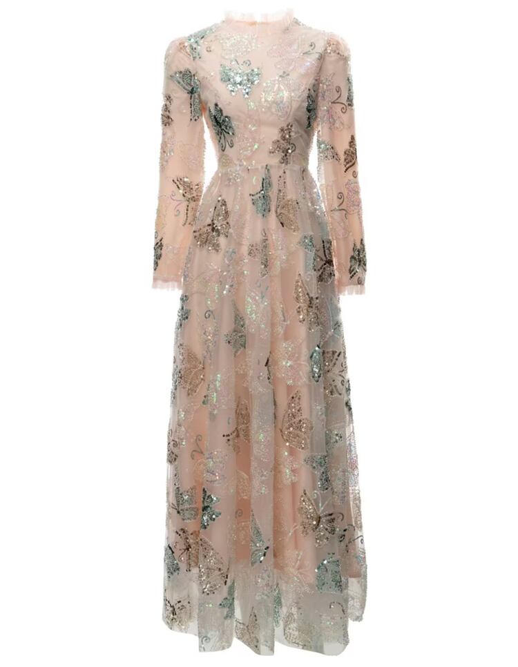 春夏レディース長袖刺繍メッシュミディドレスパーティー ロング スプリング 春物 サマー 夏物