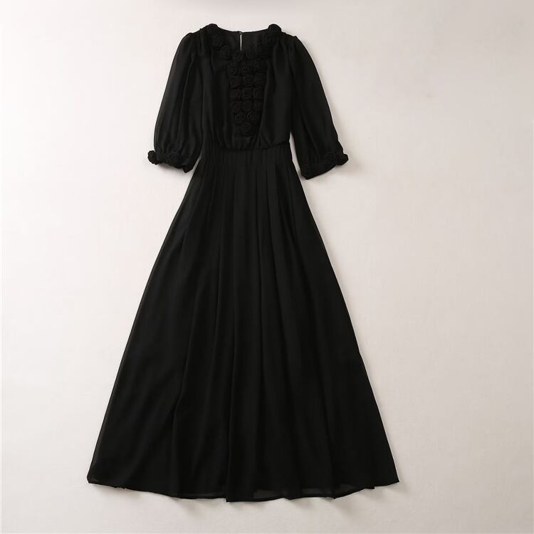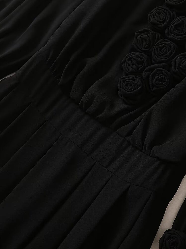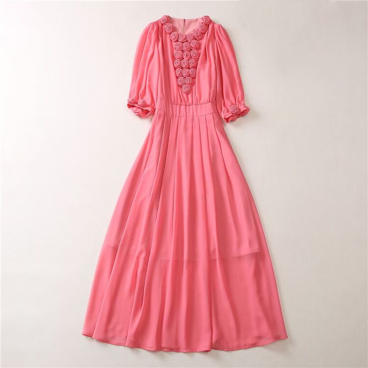 夏レディース半袖フラワーアップリケミディドレスパーティードレス ショート ハーフスリーブ サマー 夏物 フラワーデザイン