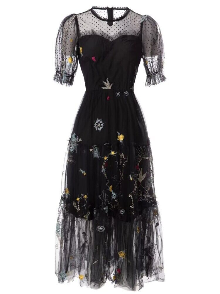 夏レディースゴージャスセレブ半袖刺繍ドレスパーティー ショート ハーフスリーブ サマー 夏物