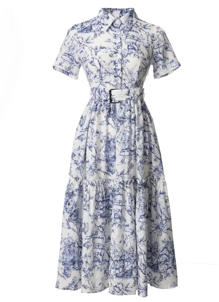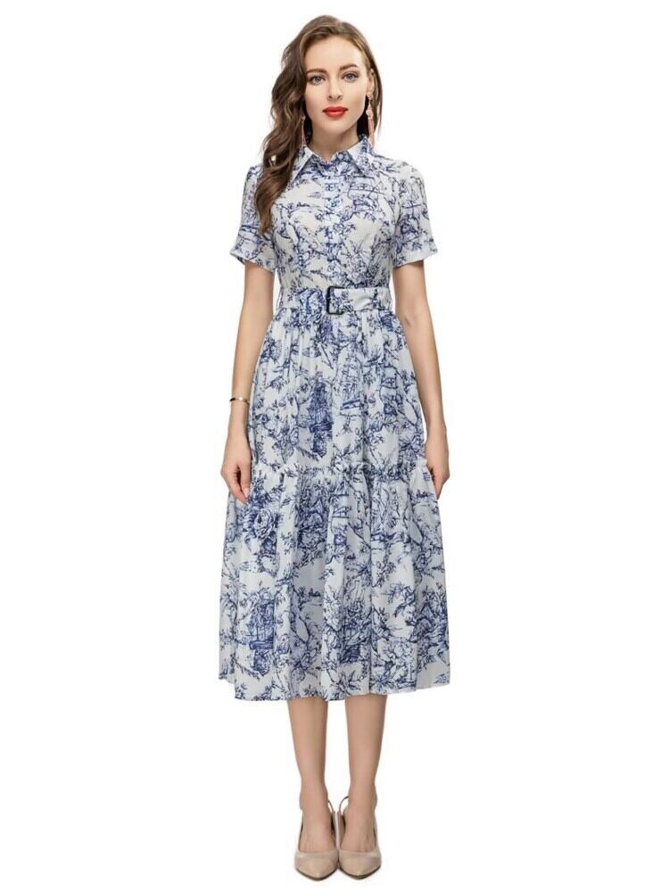夏セレブプリントシャツミディドレスパーティー サマー 夏物