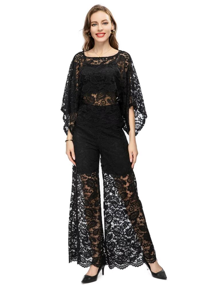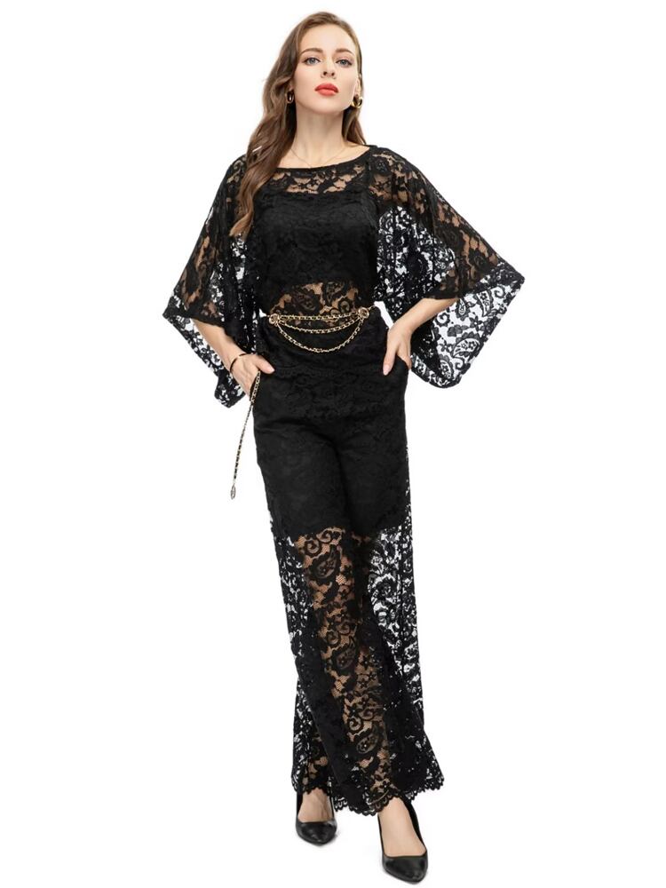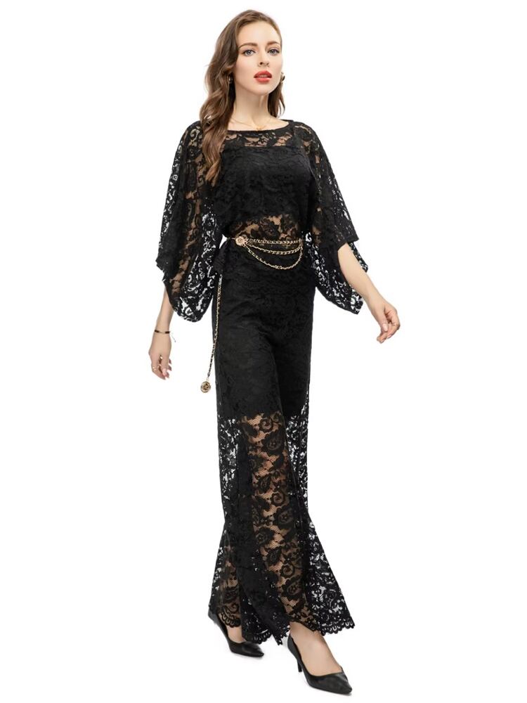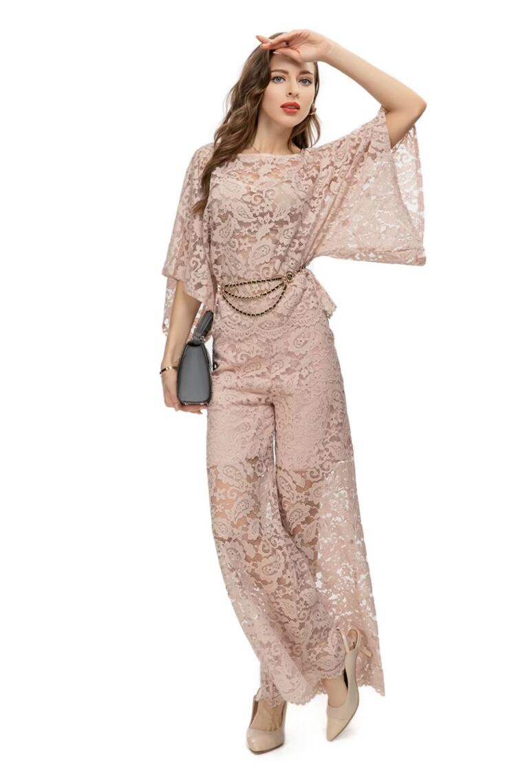 春秋レディースセットバットウィングスリーブトップスパンツレーススーツ スプリング 春物 オータム 秋物