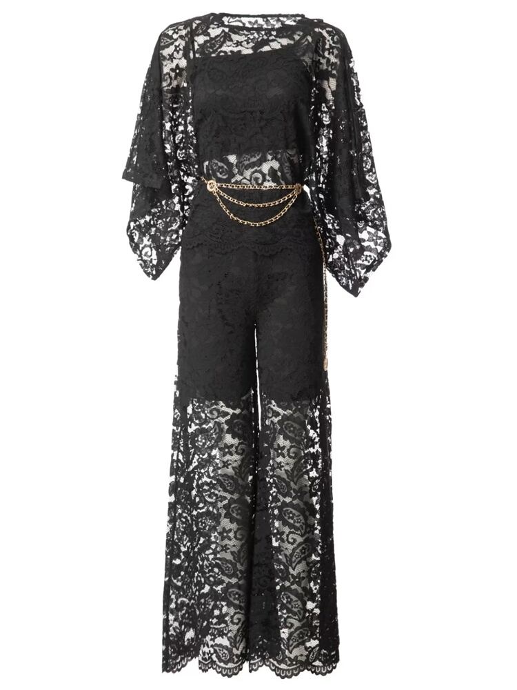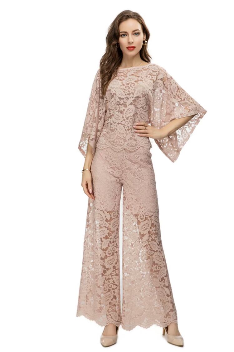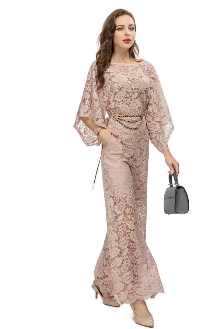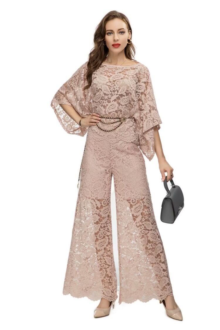 春秋レディースセットバットウィングスリーブトップスパンツレーススーツ スプリング 春物 オータム 秋物