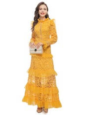 夏レディースセレブ長袖レースロングドレスパーティー サマー 夏物
