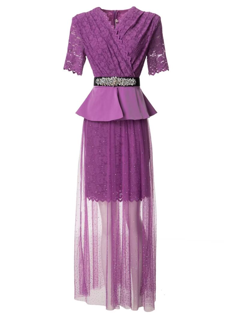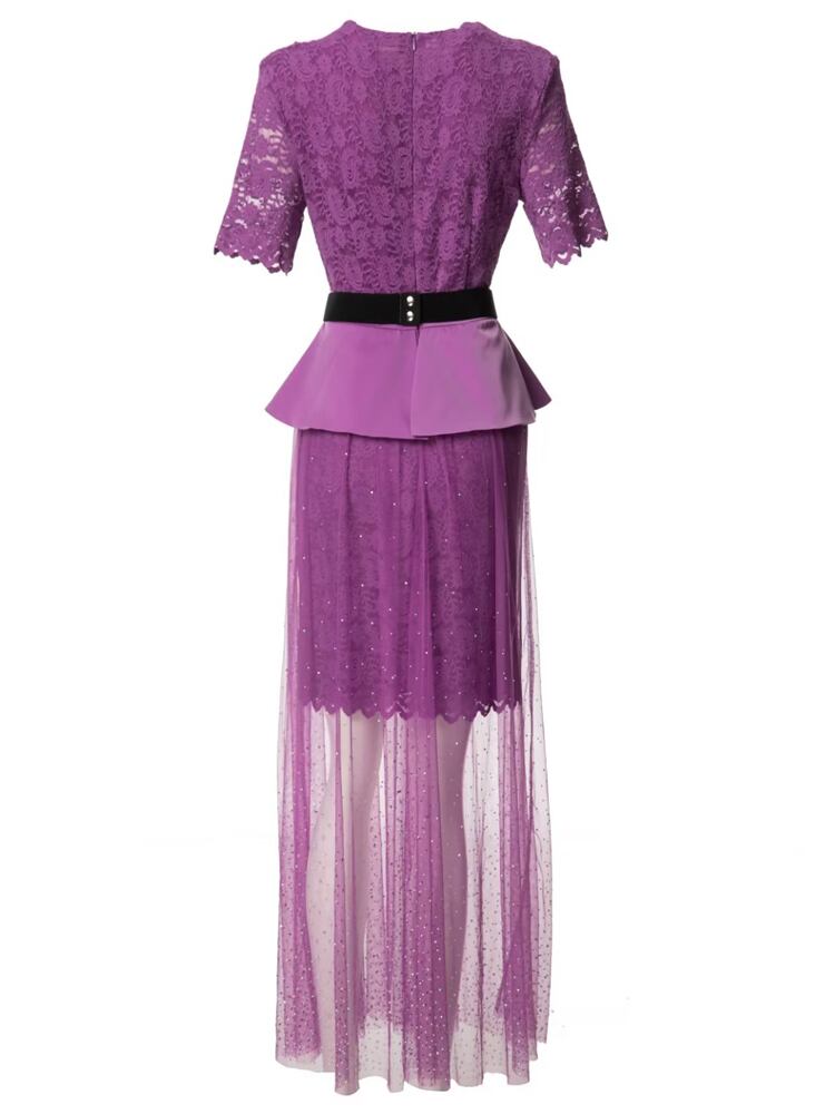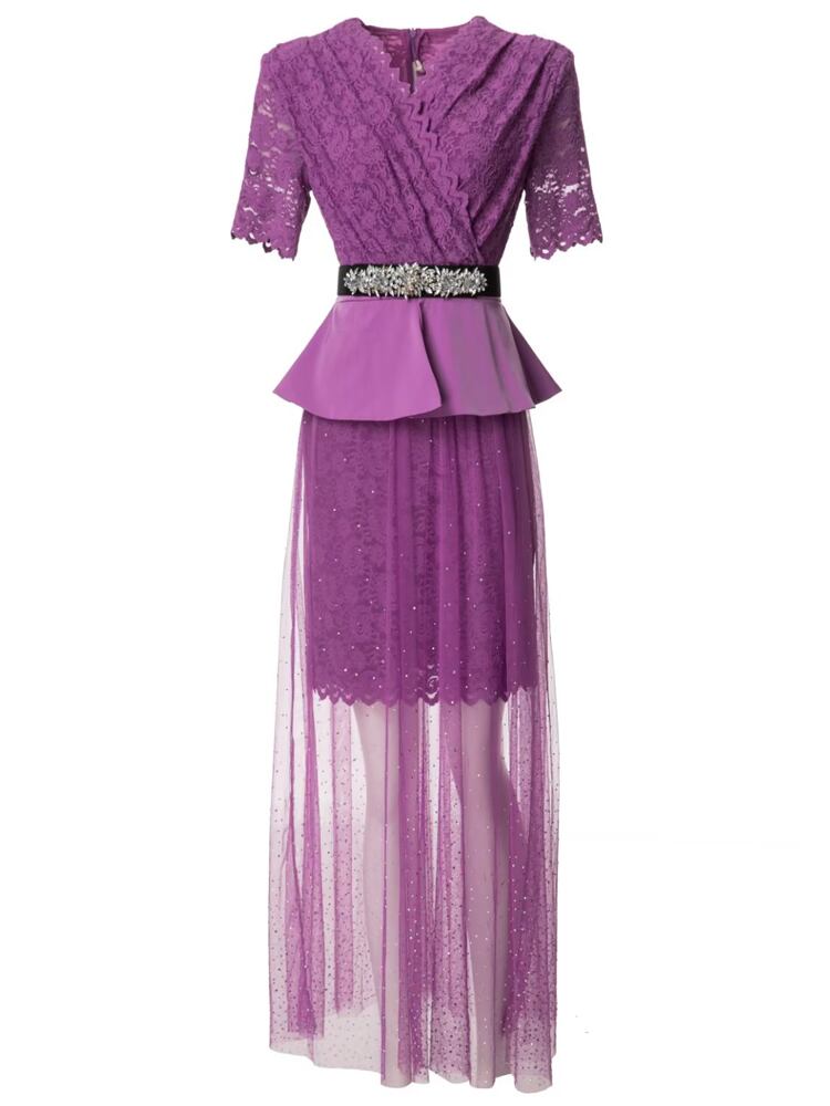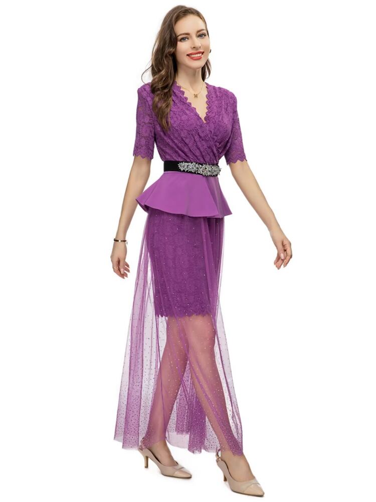 夏レディースセレブ半袖セクシーレースロングドレスパーティー ショート ハーフスリーブ サマー 夏物