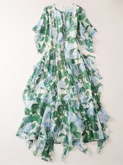 夏レディースセレブ半袖プリントシフォンドレスパーティー ショート ハーフスリーブ サマー 夏物