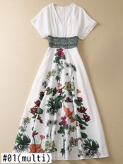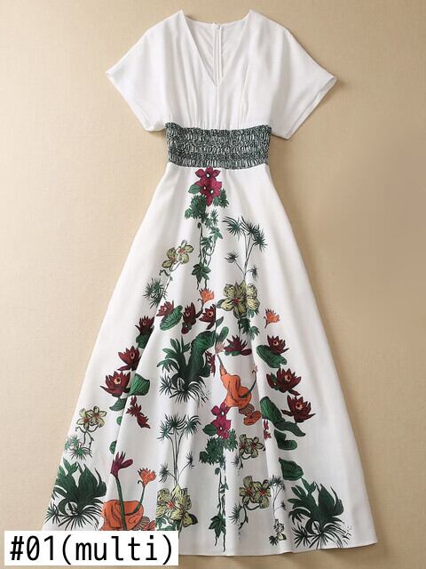 夏セレブ半袖プリントミディドレスパーティー ショート ハーフスリーブ サマー 夏物