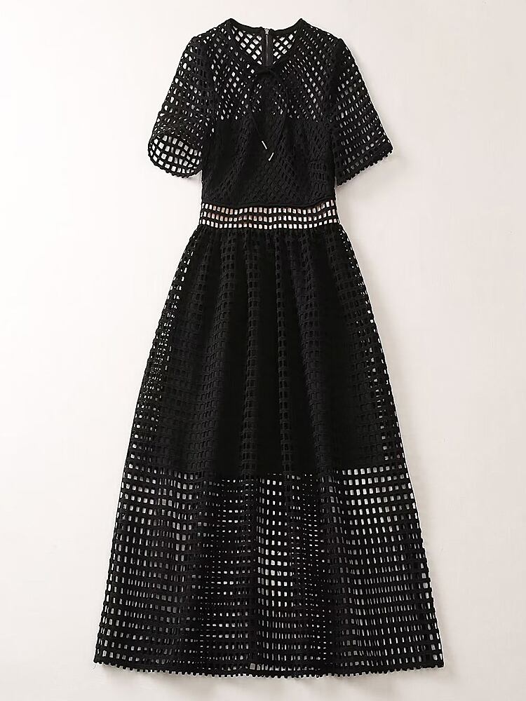 夏セレブ半袖中空黒ドレス パーティー ショート ブラック ハーフスリーブ サマー 夏物