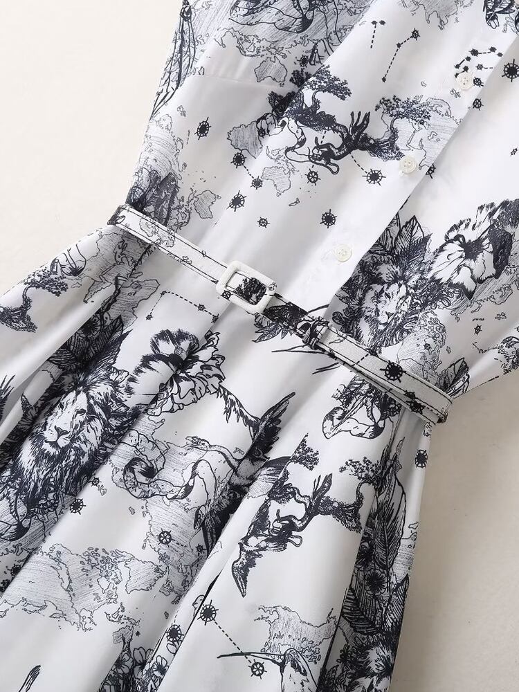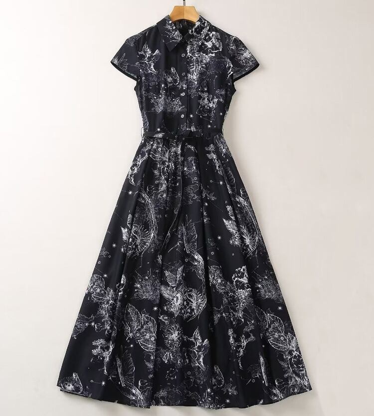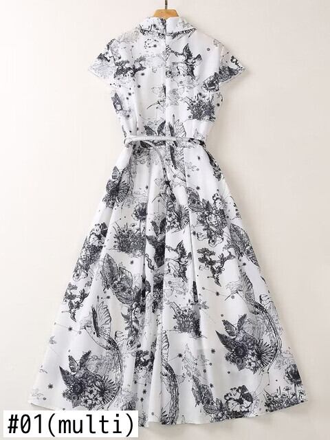夏セレブ半袖プリントミディドレスパーティー ショート ハーフスリーブ サマー 夏物