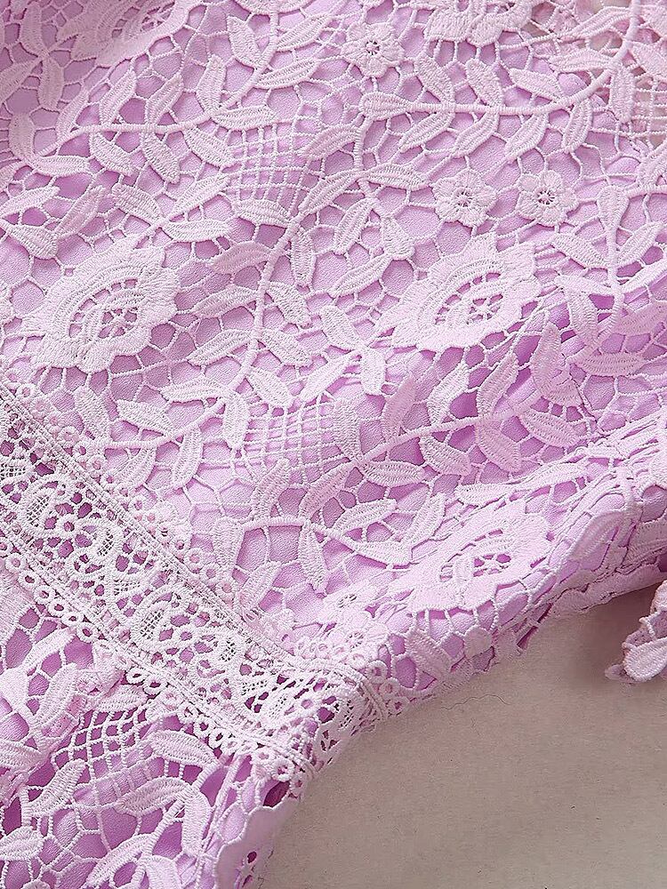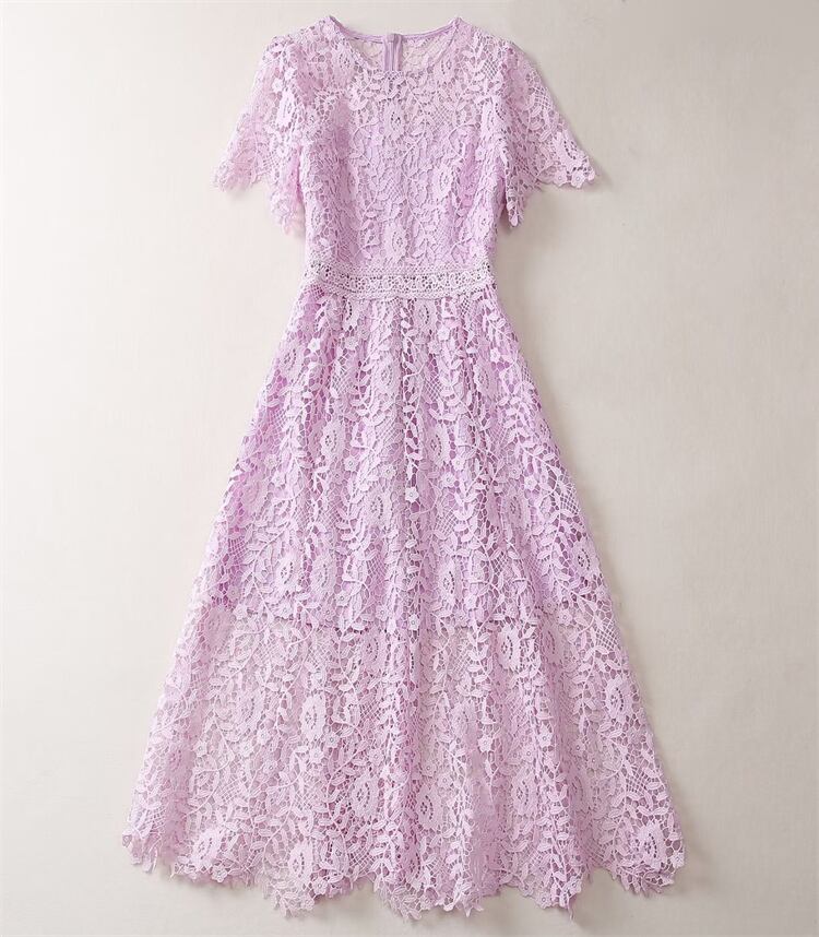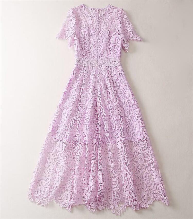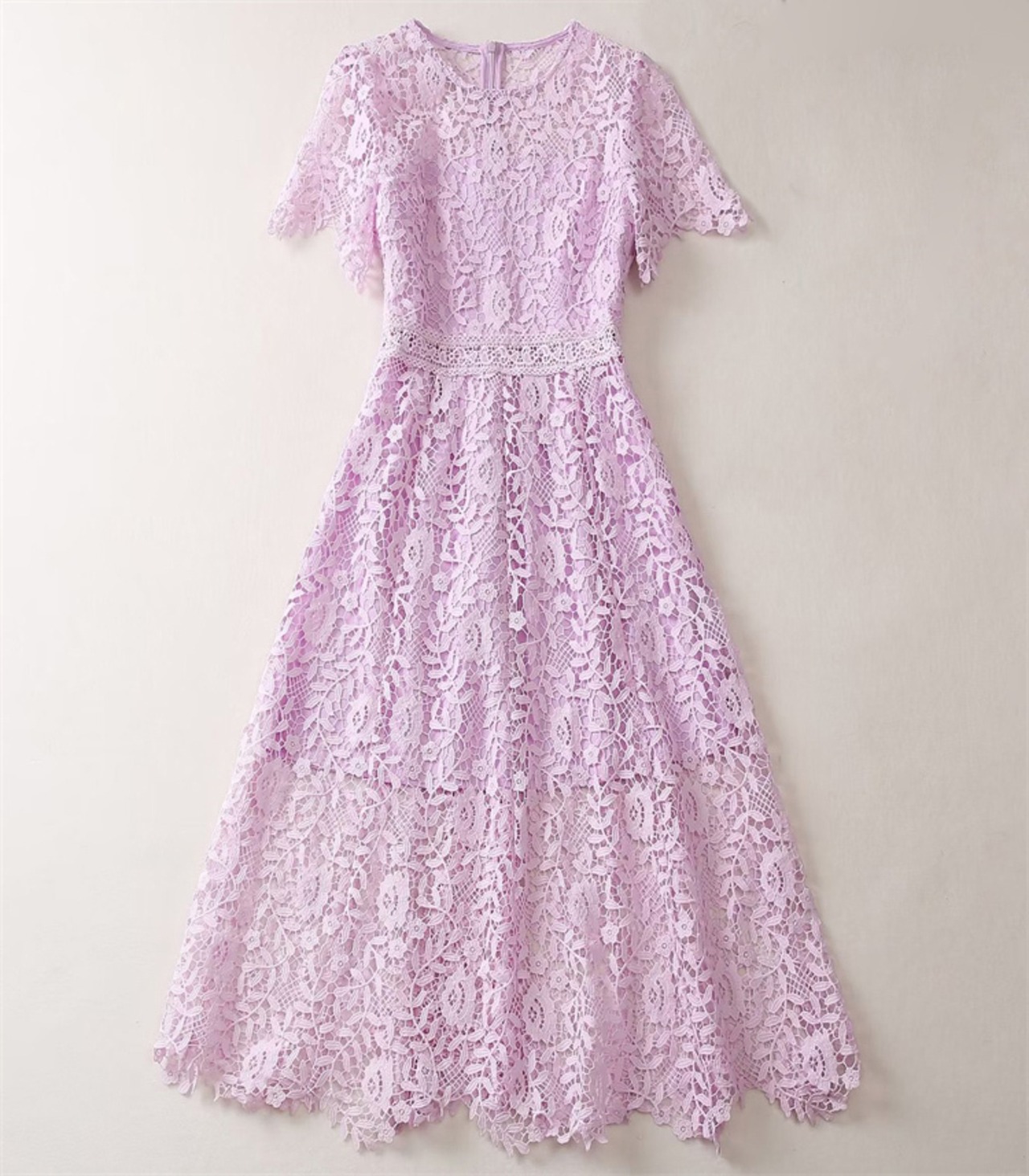 夏セレブ半袖中空ミディドレスパーティー ショート ハーフスリーブ サマー 夏物
