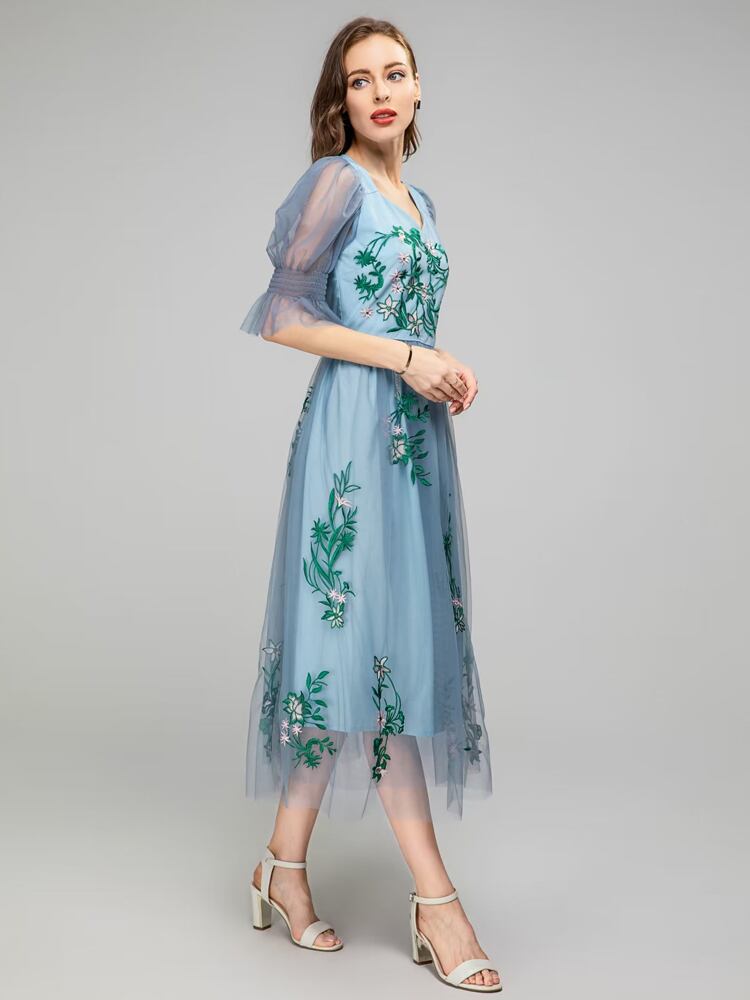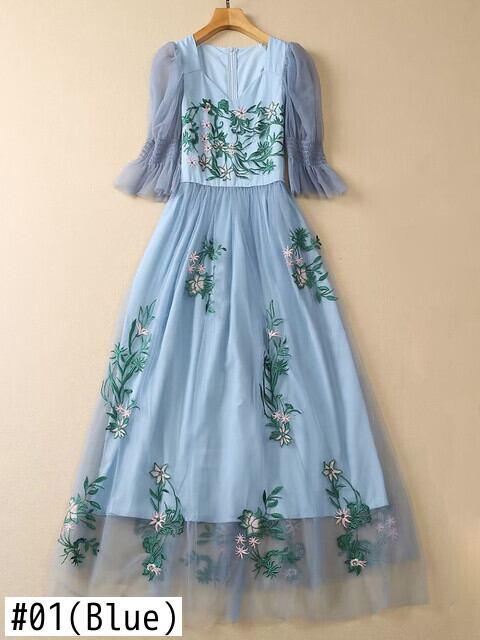 夏セレブ刺繍メッシュミディドレスパーティー サマー 夏物