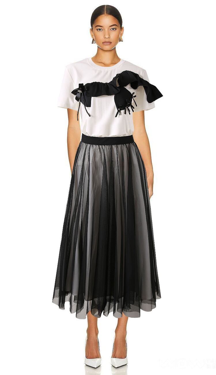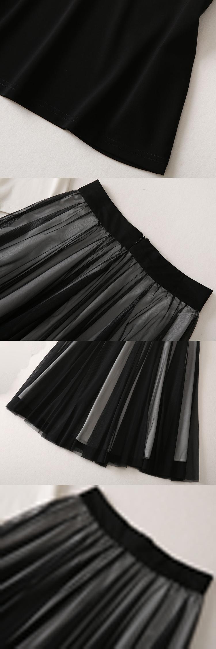 夏レディースセットTシャツトップスメッシュスカートプリントスーツ サマー 夏物