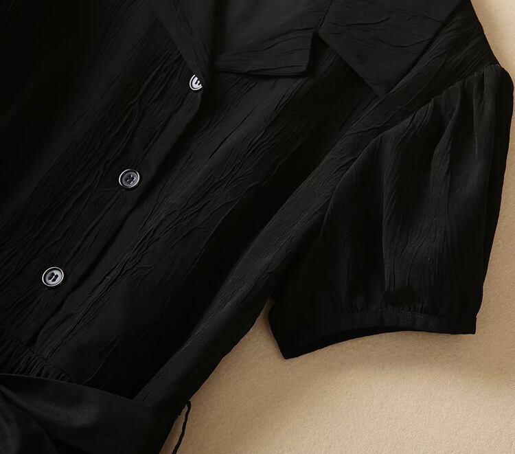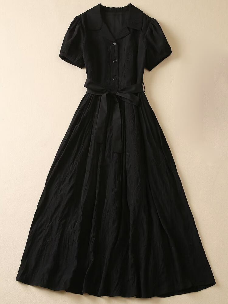 夏セレブ半袖ブラックミディドレスパーティー ショート ハーフスリーブ サマー 夏物