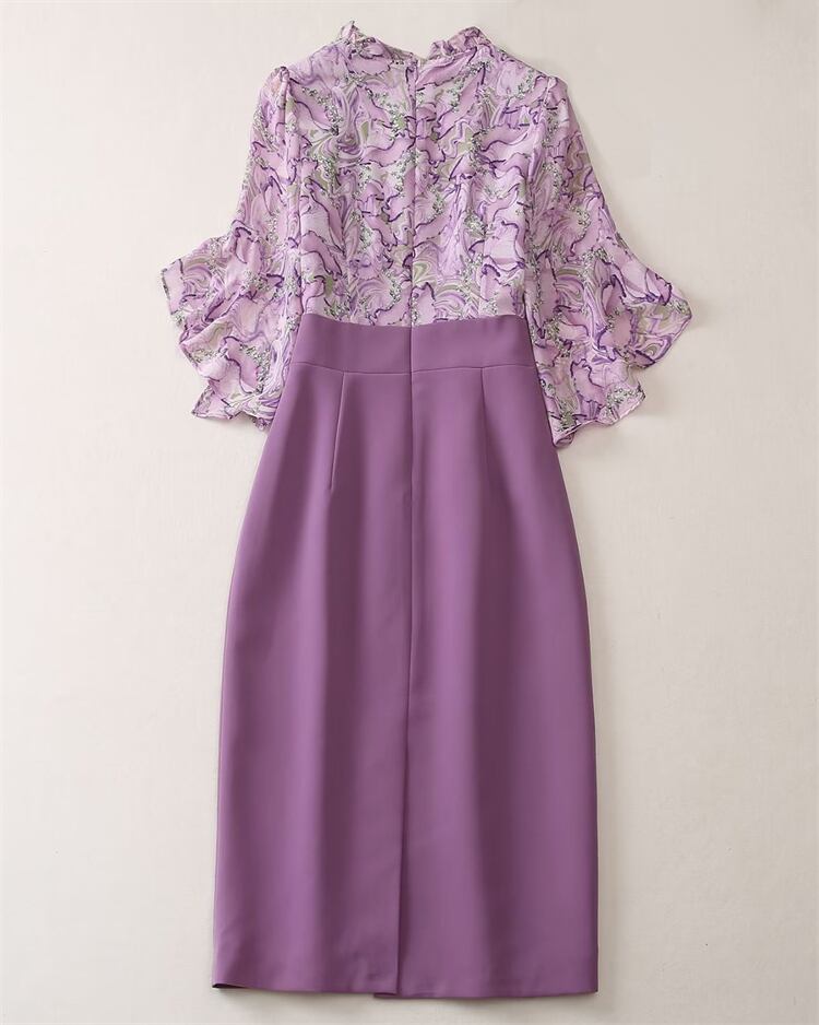 夏セレブ半袖プリントミディドレスパーティー ショート ハーフスリーブ サマー 夏物