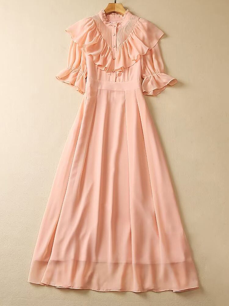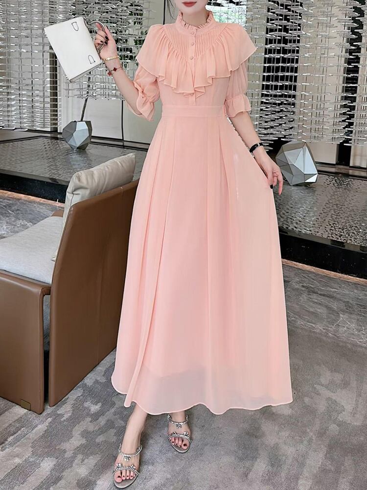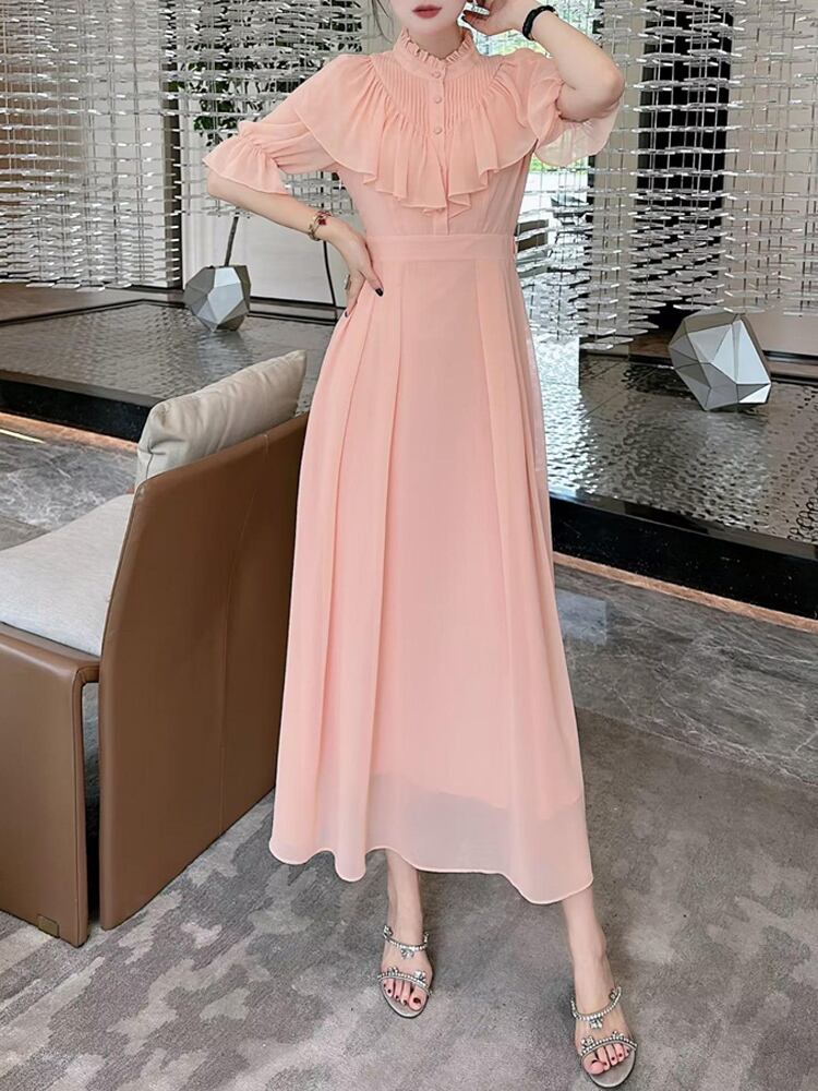 夏レディース半袖シフォンミディドレスパーティー ショート ハーフスリーブ サマー 夏物