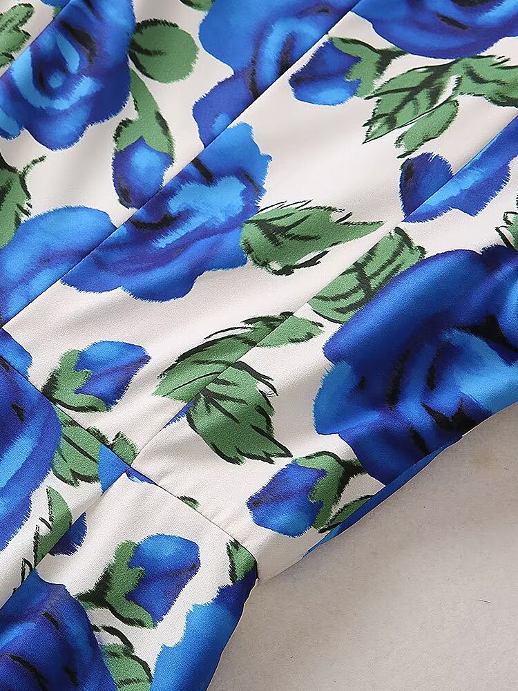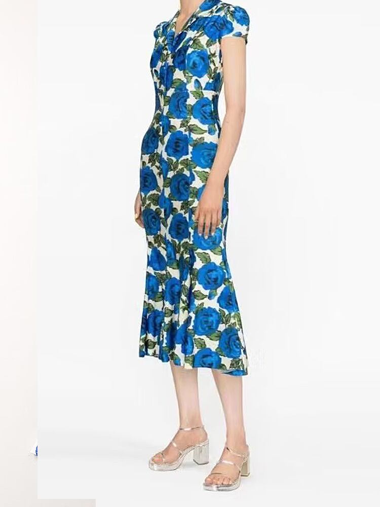 夏セレブ半袖プリントミディドレスパーティー ショート ハーフスリーブ サマー 夏物